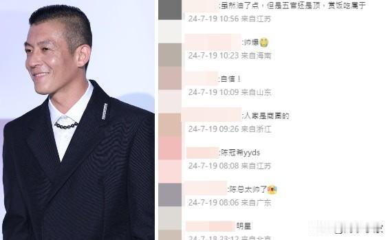 陈冠希久违现身公开活动,少年感满满痞帅地位难以被取替! 现年43岁的陈冠希(Edison)近年不断被指颜值崩坏,满脸皱纹且疑出现秃头现象等,被嘲笑愈来愈像内地男星赵本山。但近日他久违现身上海出席公开活动,最新状态惊艳不少网民,颜值重回巅峰,相当有型帅气,完胜同场小鲜肉男星。 久违出席公开活动的Edison,身穿黑色西装现身,再配上其极短利落发型,整个人散发着冷酷痞帅气息,令不少网民赞不绝口。而从网上曝光的影片可见,当Edison到达活动场地时,其就单手插口袋非常有自信地走到布景板前拍摄,时而展现出冷酷pose及招牌笑容,电力十足,整体外型完全没有中年大叔味道。 而从网友的零修图镜头下可见,他五官依然精致,脸颊下颚线线条明显,身材瘦削没有发福迹象,虽然比起从前成熟了不少,但骨子里的痞帅气质依然在,43岁有这个状态已保养得非常之好,大家纷纷留言表示:「帅爆」、「自信」、「永远的神」等,痞帅地位难以被取替。#夏日生活打卡季#