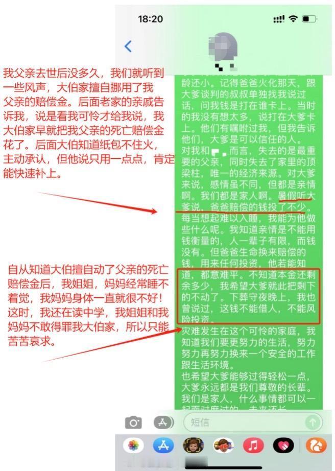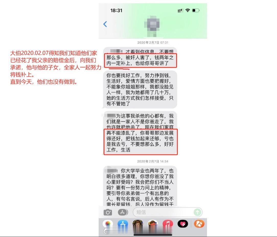 #侄女曝光大伯一家霸占父亲的死亡赔偿金不归还#