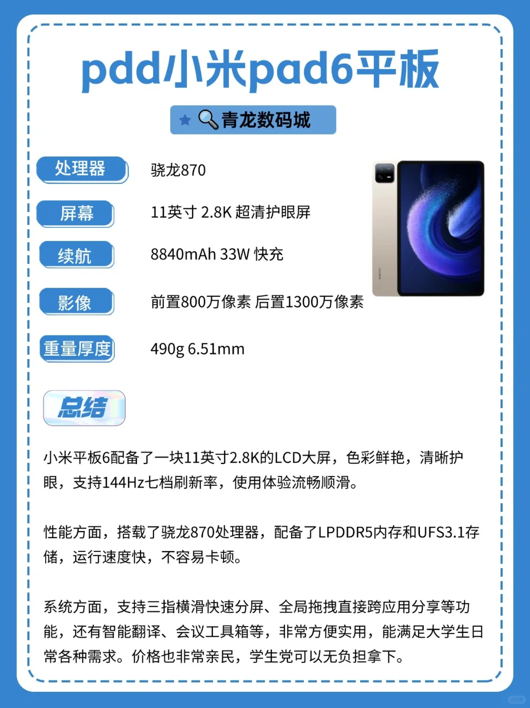 学生党必看高性价平板推荐|含pdd店铺推荐