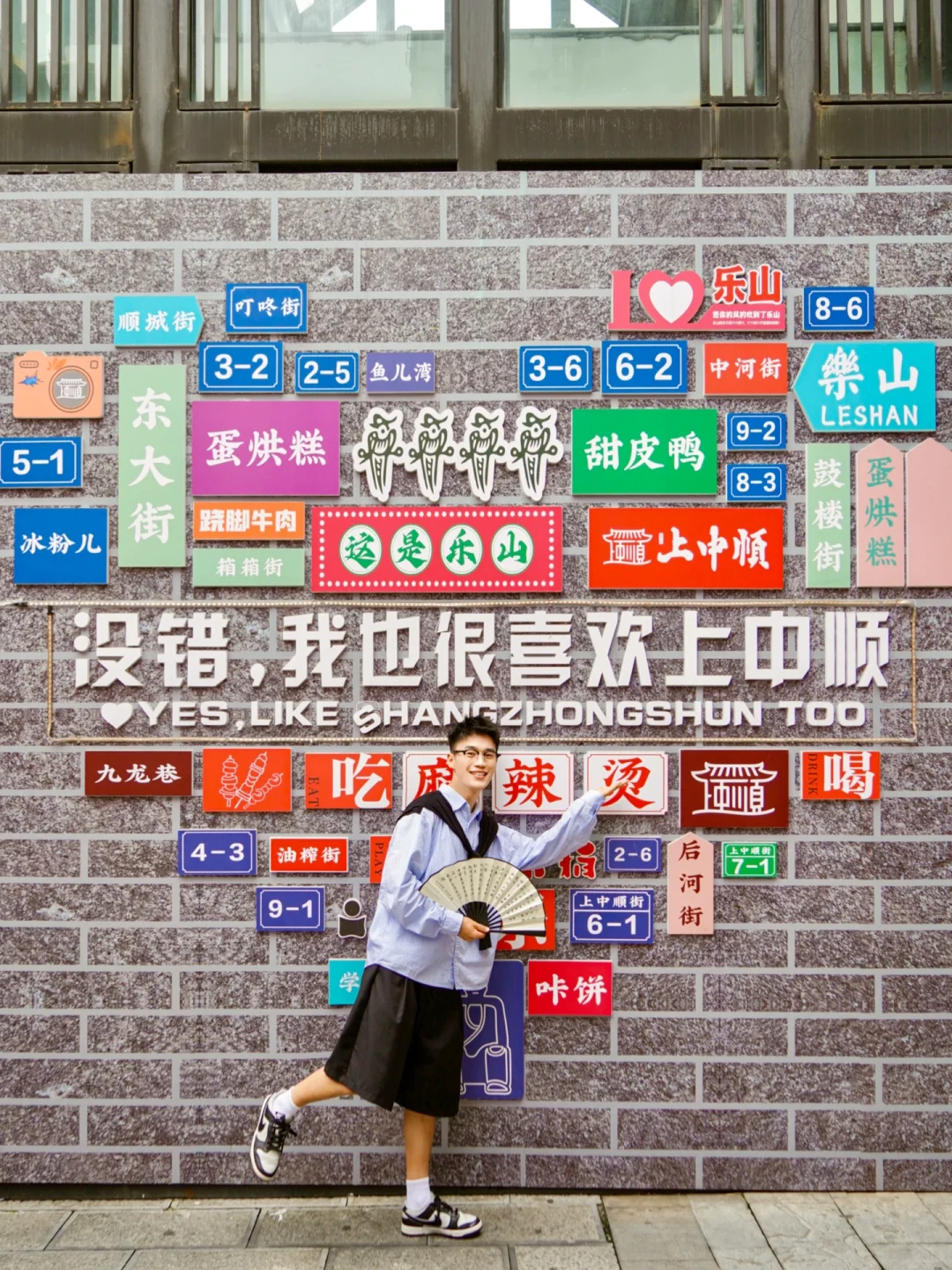 1️⃣动车成都东站➡️乐山站,全程50分钟左右,下车先去附近的“乐山”红墙拍照,然后打车至上中顺街,其他地方基本步行可抵达。