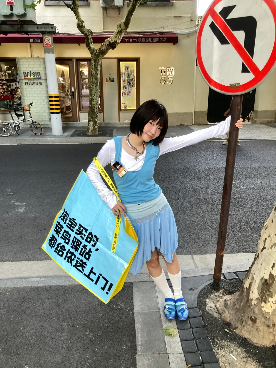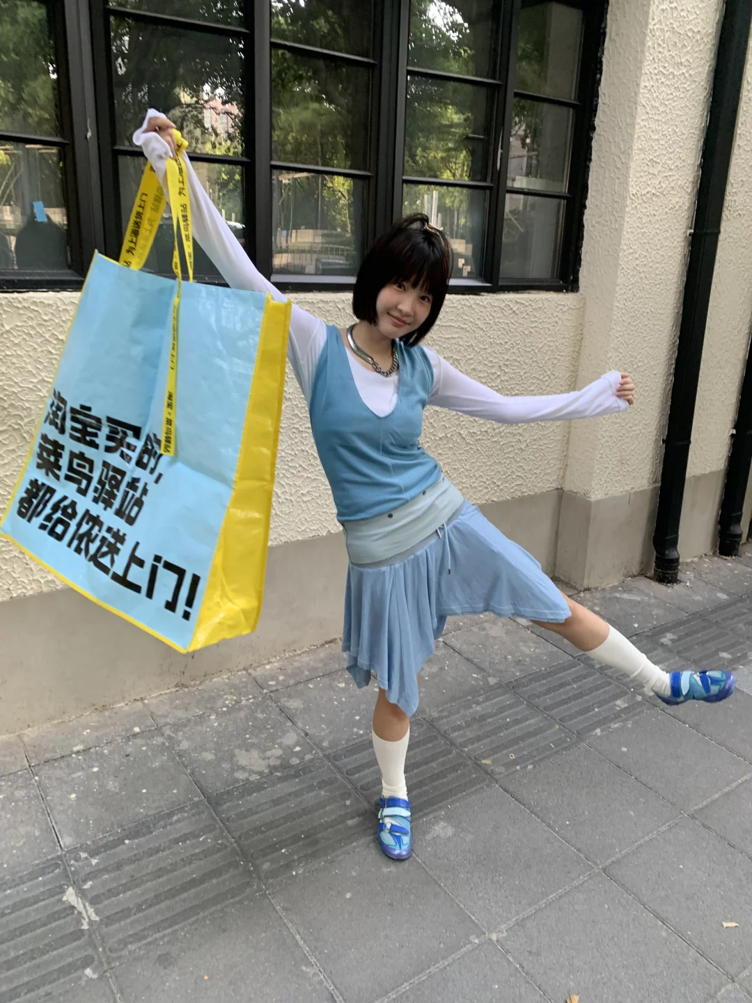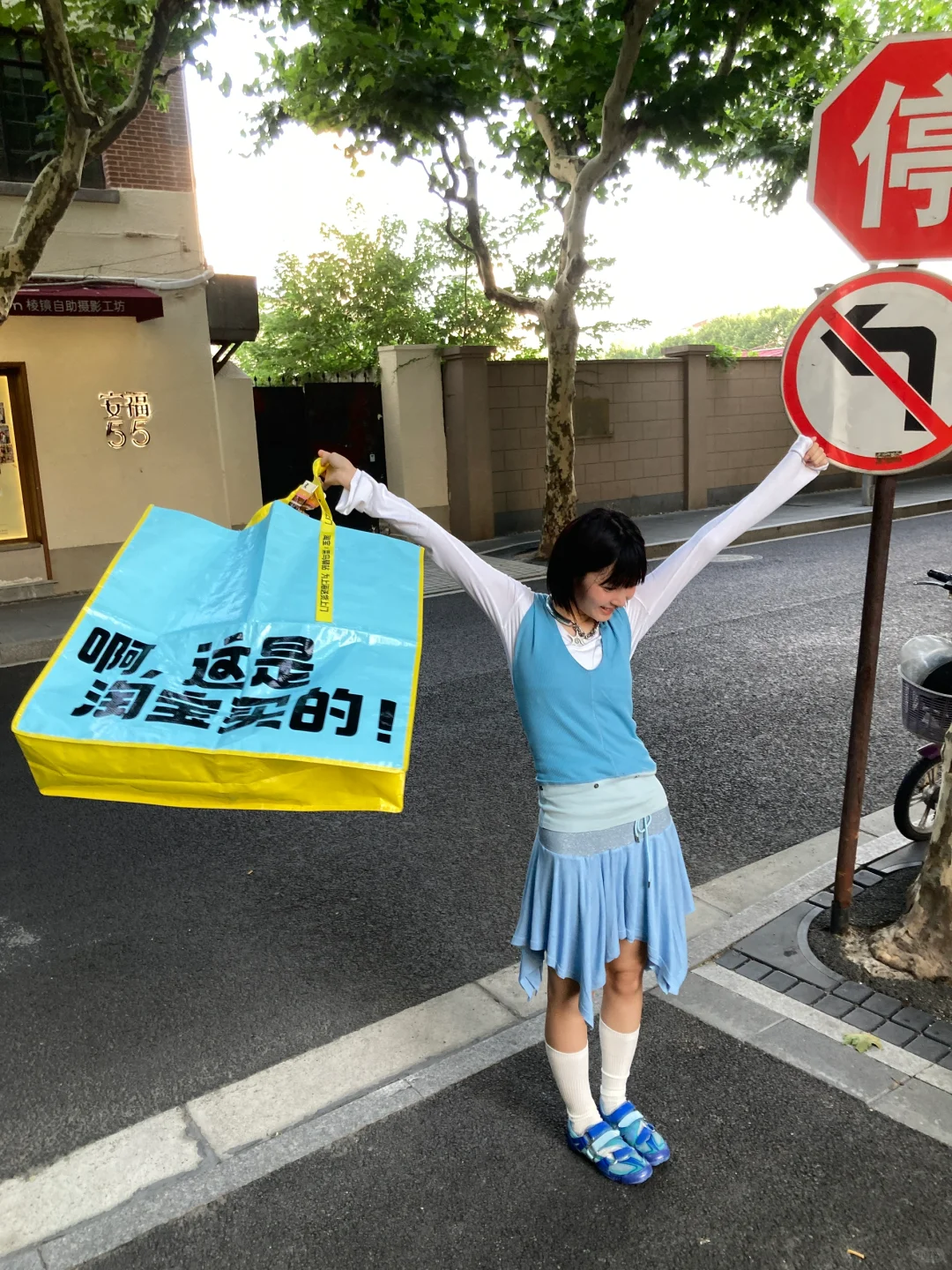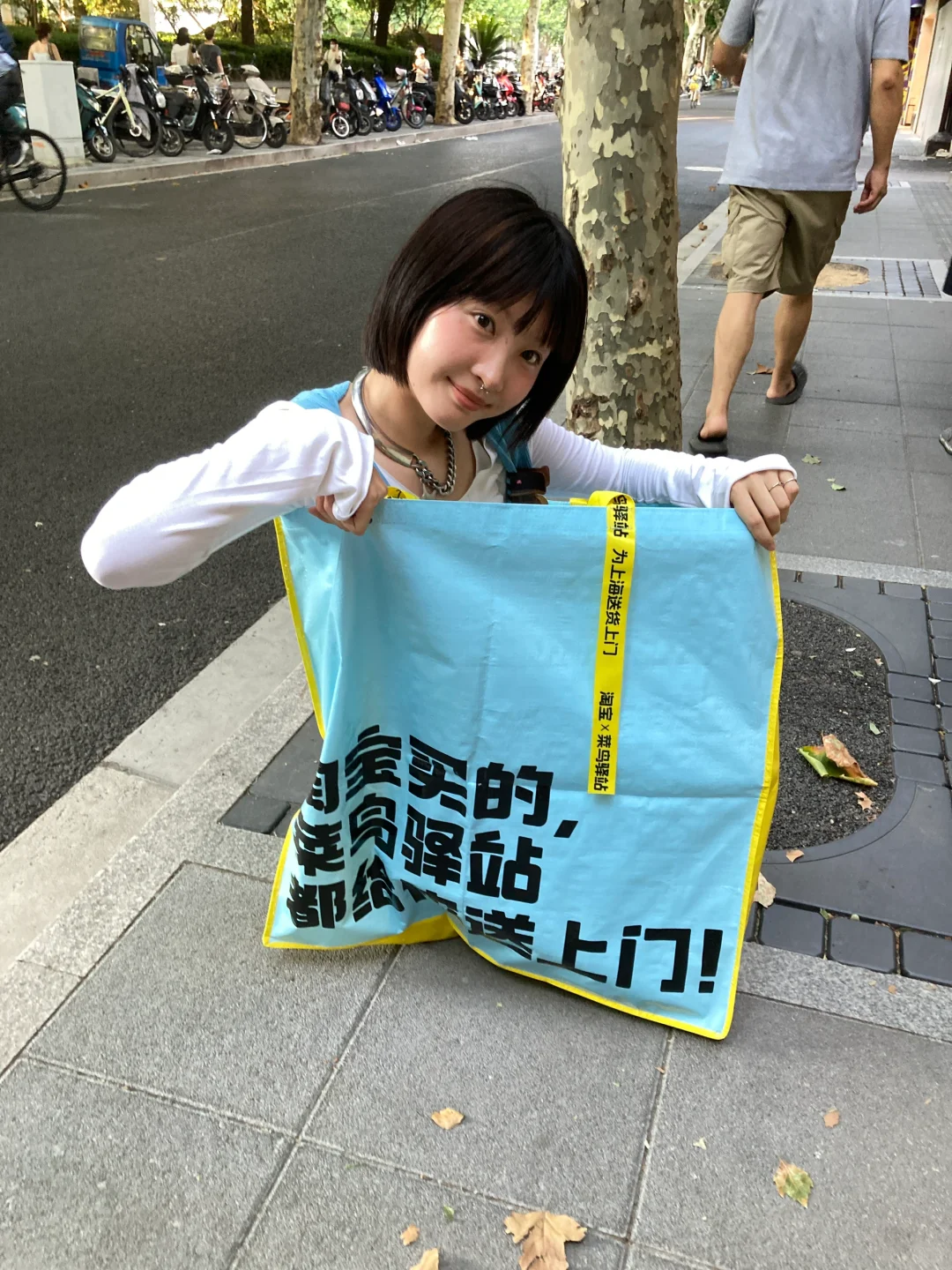 这街拍,不仅时尚,连搬家袋都成了潮流配饰,佩服