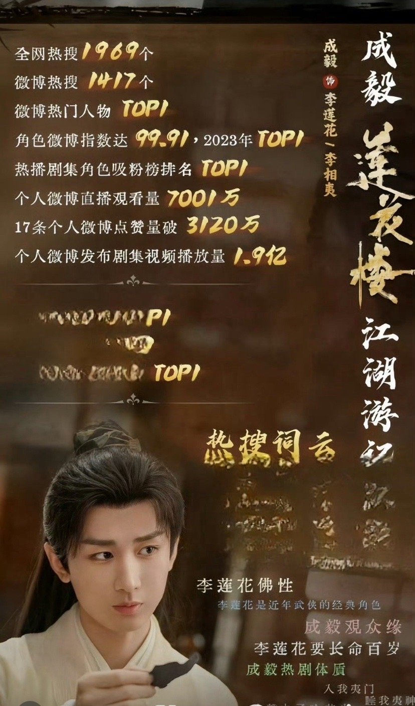 时光匆匆,转眼间成毅主演的《莲花楼》开播已满一周年。