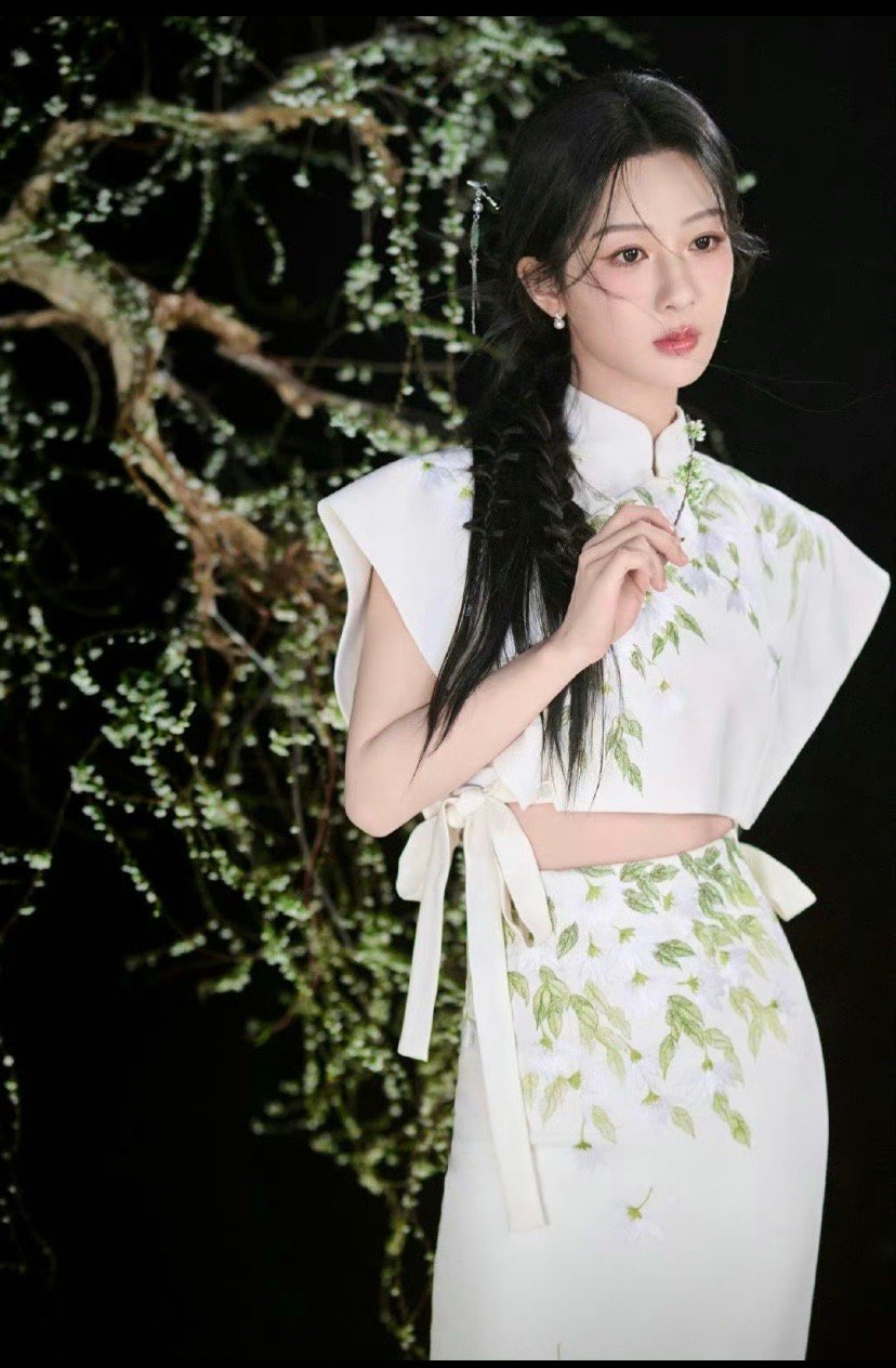 杨紫换新中式风格,一袭白裙清新雅致,淡妆配黑色短发,如秋水清冷佳人,恰似那旧时江