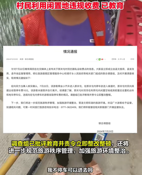 女子表示,她的目的是进入绿道游玩,当车驶入那关屯内,寻找到合适位置停车时,意外发生了。那关屯的村民突然出现,声称要收取 10 元停车费。