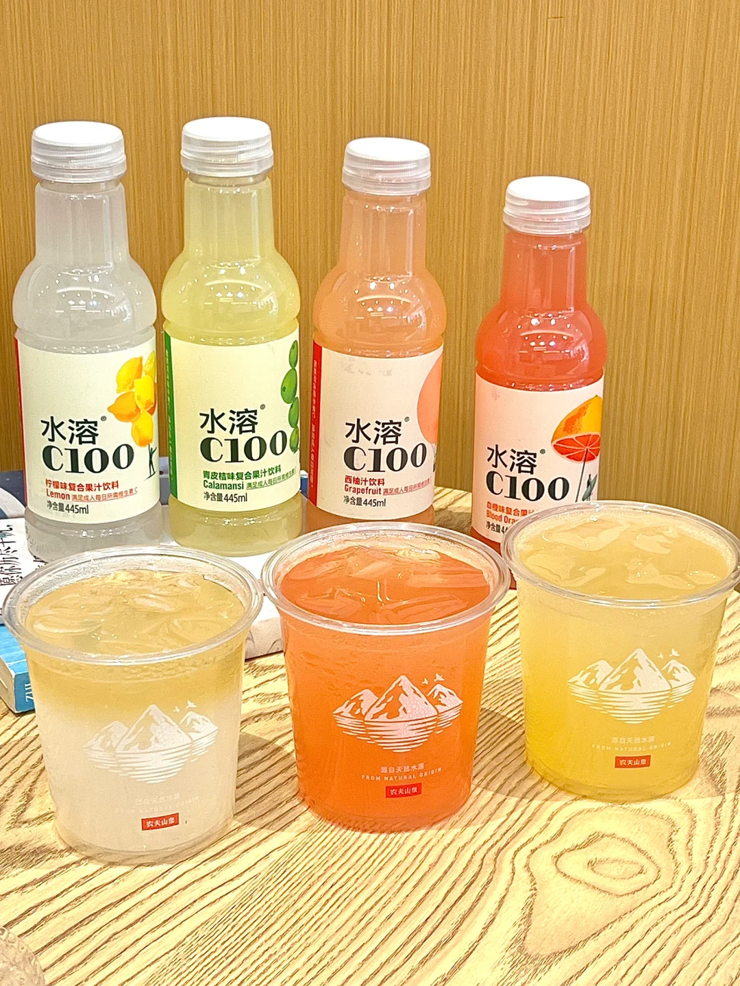 选了水溶C100的四种口味:柠檬、西柚、青皮桔和血橙,这次试试我们的本土品牌-金星啤酒做特调,搭配农夫山泉冰杯,来解锁夏日神器啦!
