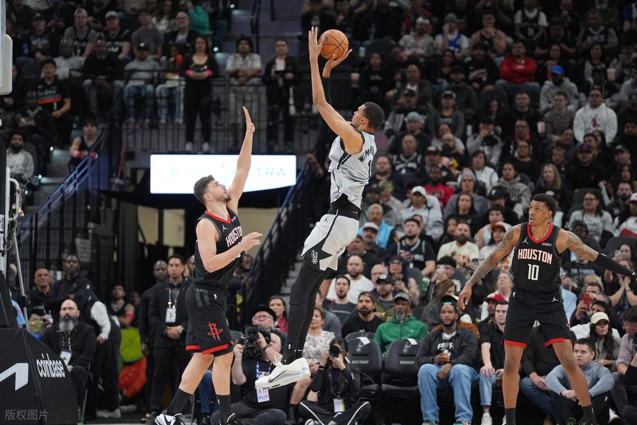 第二节一上来,马刺这边火力全开,上来就打出一波6-0的小高潮拿回了领先优势;随后两队互有攻守,阿门、谢泼德、申京的得分帮助火箭咬住了比分;但很快,马刺就再次利用防守反击打出一波7-0的小高潮以50-39取得11分的领先。小史密斯连拿6分帮助火箭将分差缩小到7分;马刺2+1又取得10分领先后,申京连拿4分缩小分差。之后,两队就进入镜像模式,你进我也进,你不进我也不进。但是最后时刻,火箭先是让福克斯轻松上篮得分,随后出现失误,文班亚马命中压哨三分,半场比赛结束,火箭57-69落后12分。