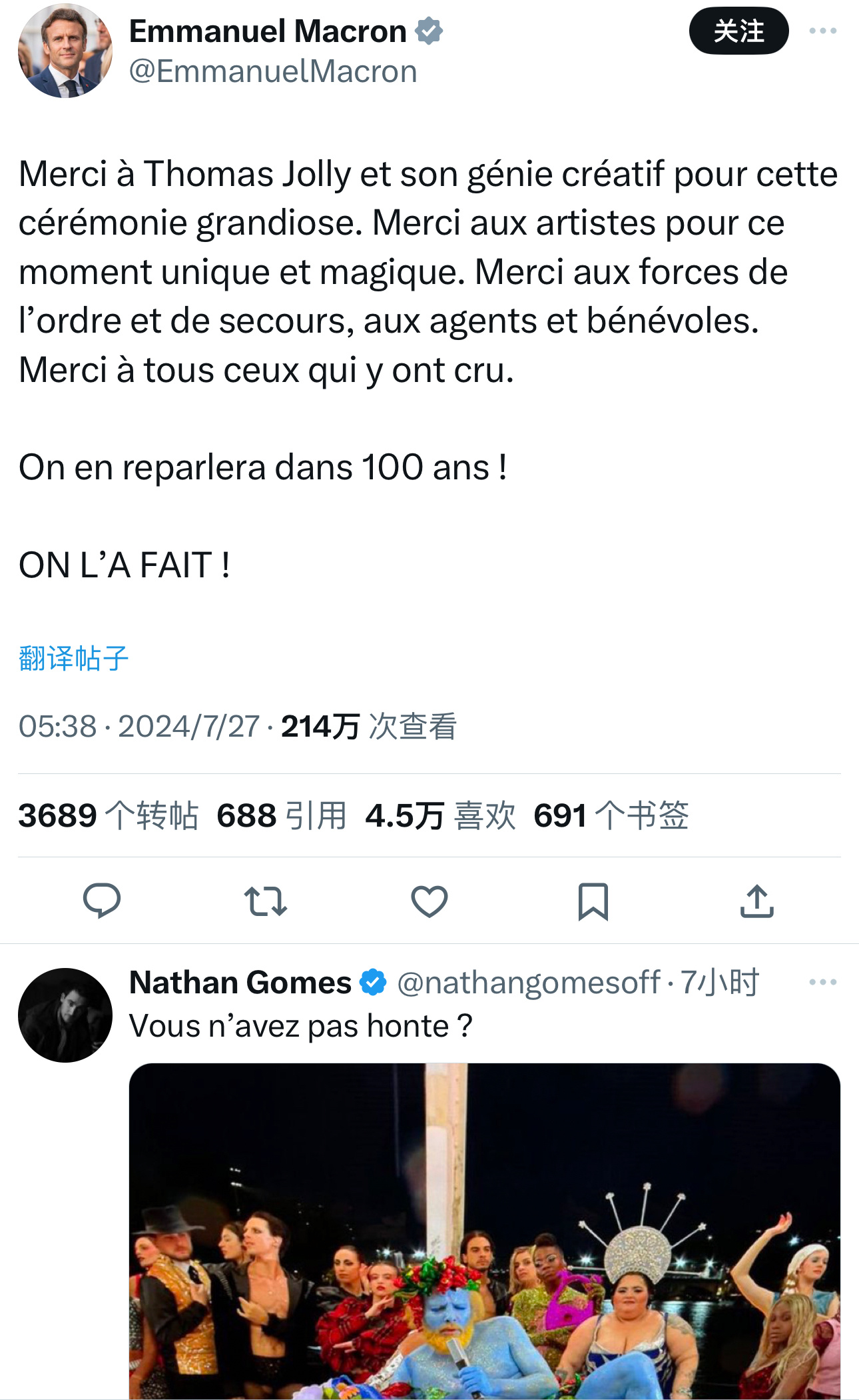 #巴黎开幕式 真的牛##巴黎开幕式 争议#