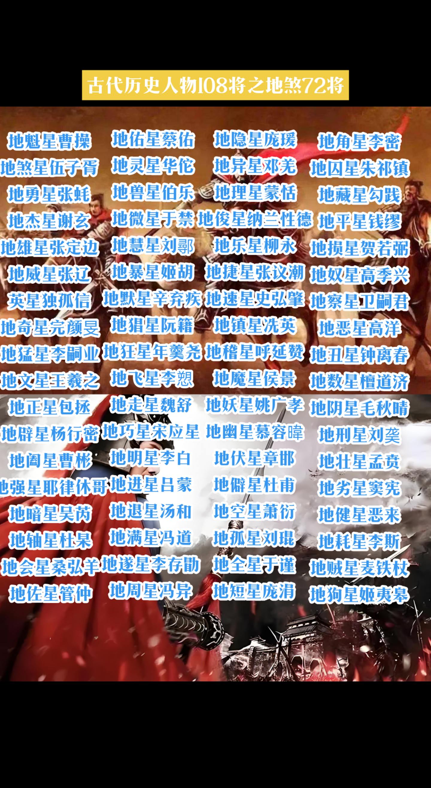 历史人物108将天罡36地煞72纯属娱乐开心就好