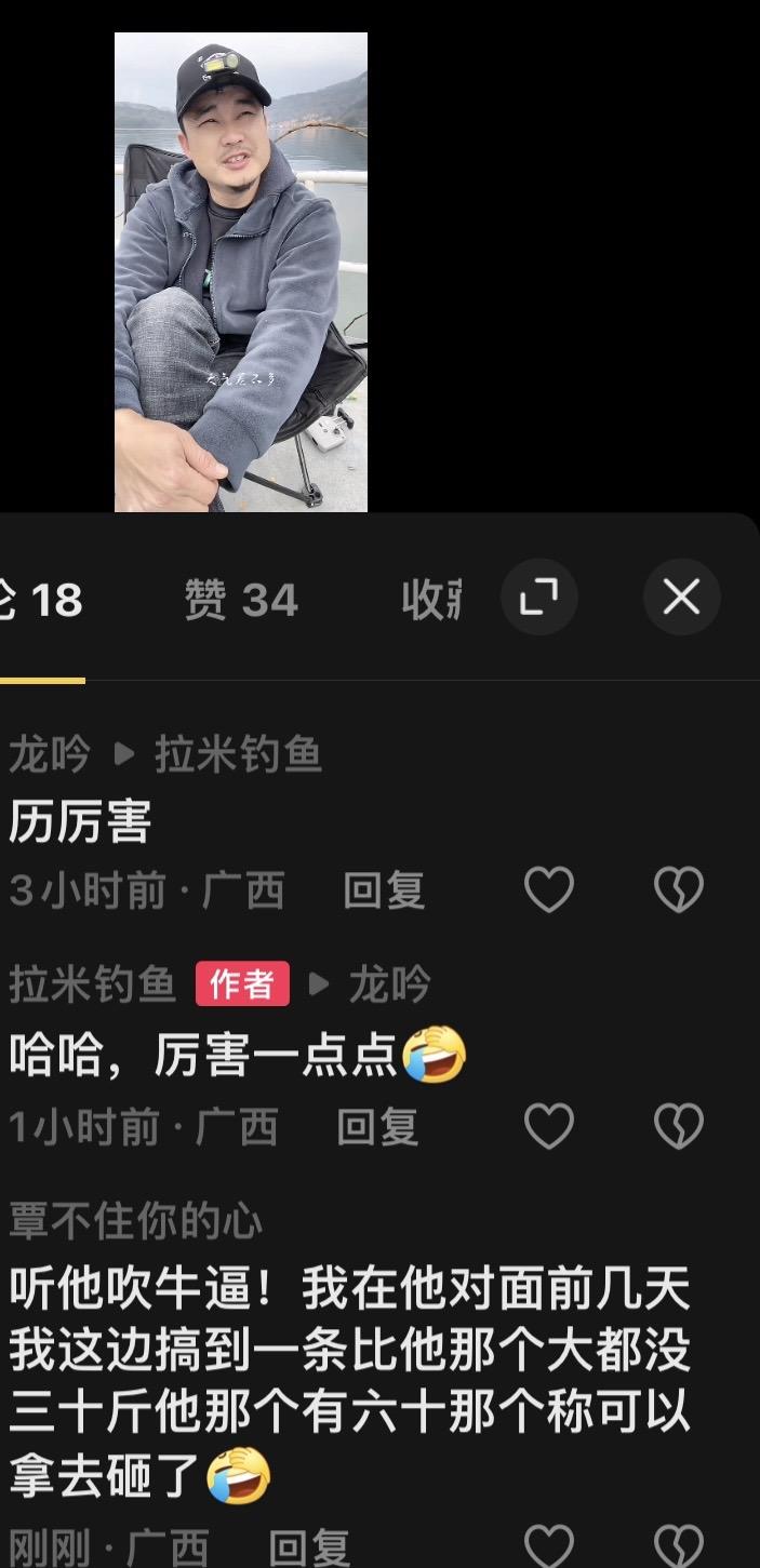 中鱼时抄网没在船尾,打电话叫附近路亚的兄弟抄的,如果我有评论区这位“论剑”兄弟一半自信60+我能说100+😂😂😂好大一条鱼 爱钓鱼的男人 大青鱼