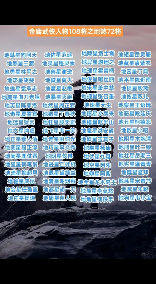 金庸武侠人物108将天罡36星 地煞72星纯属娱乐开心就好
