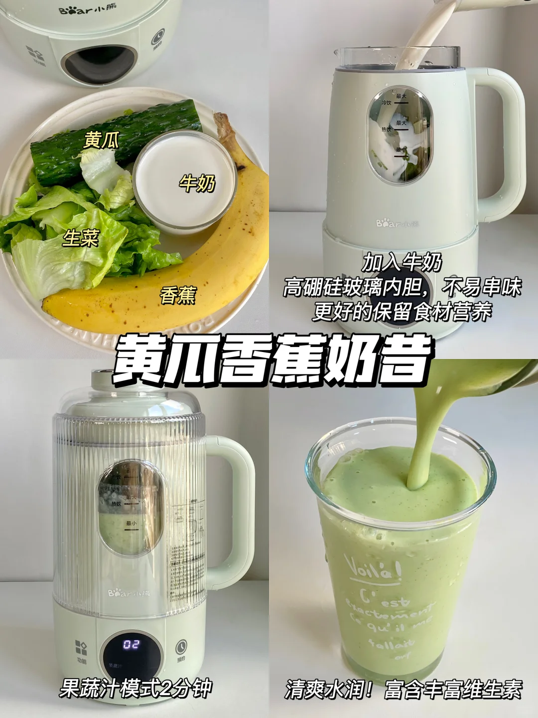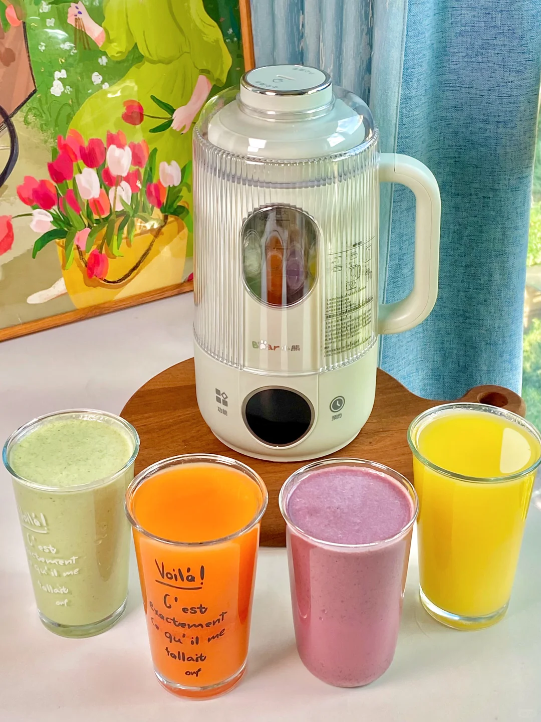 我们家用的是小熊家的玻璃舱豆浆机,打出来的果蔬汁奶昔都很细腻丝滑,没什么渣渣!