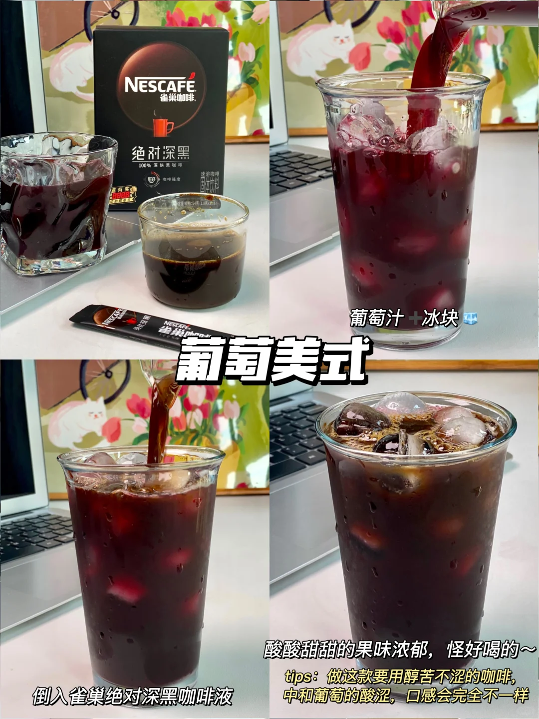 ✨酸酸甜甜的的果味浓郁,做这款一定要用苦感重、不酸的咖啡,才能中和葡萄自身的酸涩,口感会完全不一样!怪好喝的~