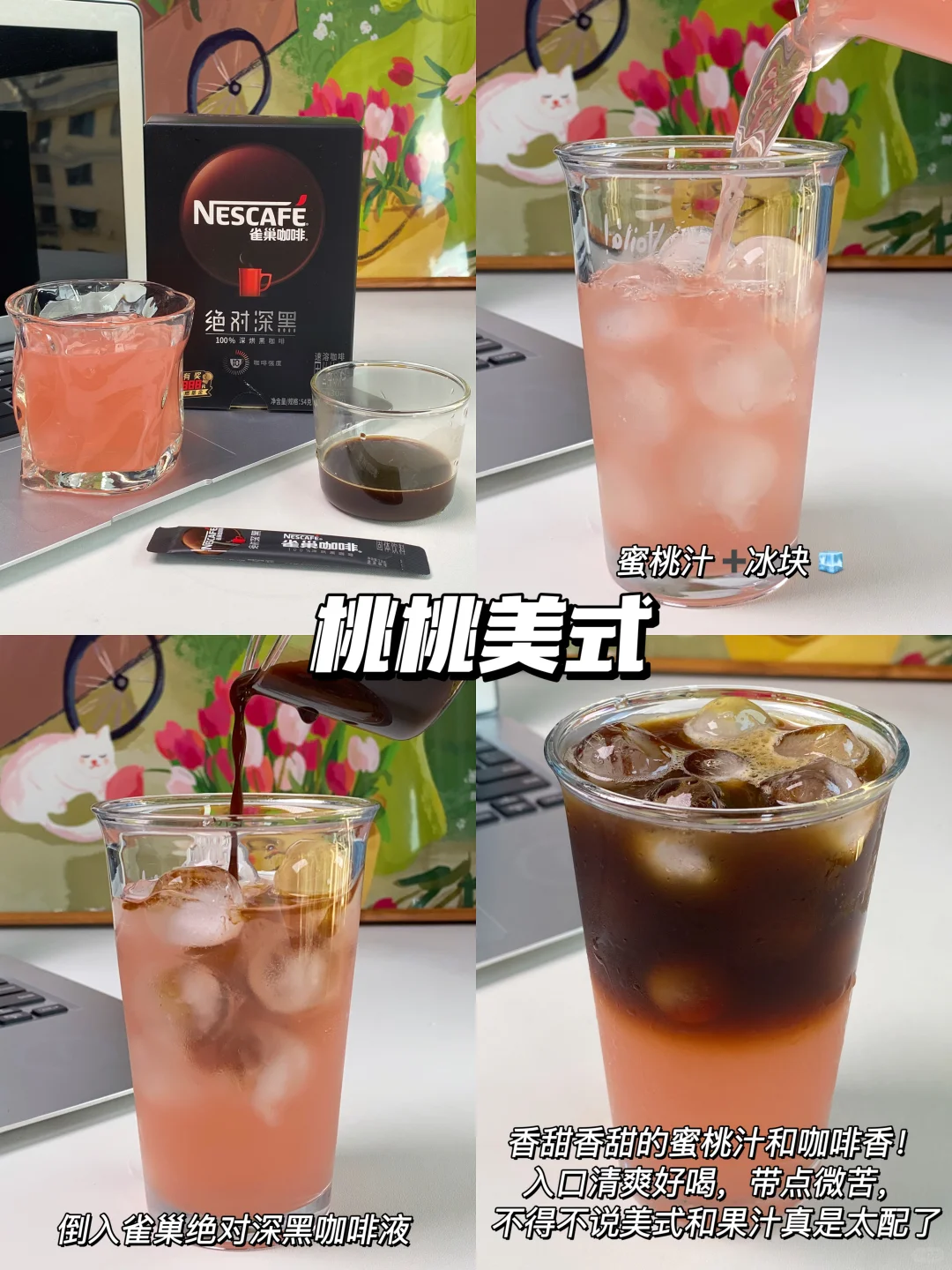 ✨香甜香甜的蜜桃汁和咖啡香!入口清爽好喝,带点微苦,不得不说美式和果汁真是太配了
