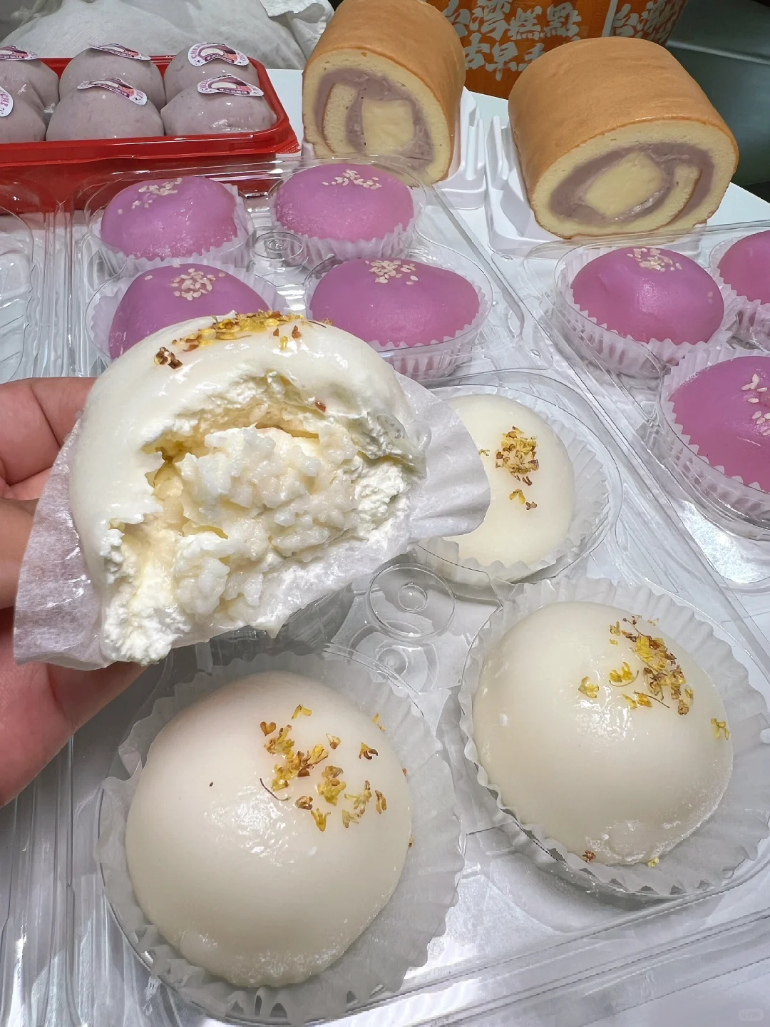 料多到pu出来的车轮饼!!酒酿大福!!芋泥大福!!啊啊啊太太太好吃了!!!🥺🥺