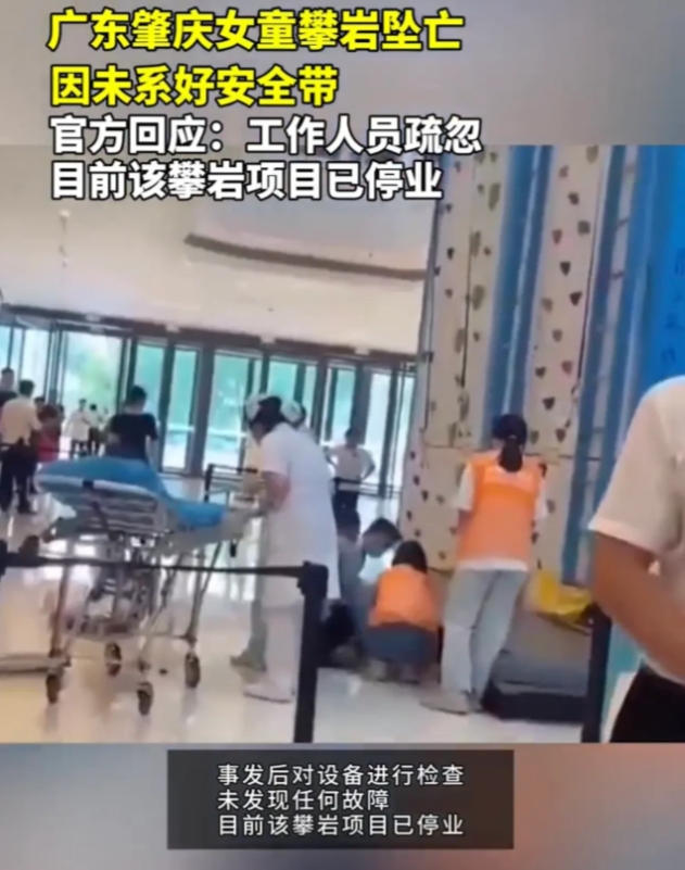 广东肇庆,女子带着女儿到商场参加攀岩活动时,工作人员竟然因疏忽大意,仅为女童戴了安全帽,没有为其系安全带。女童因未系安全带坠落地面并导致死亡后,当地主管部门关停了该项目。网友们气愤的表示,太不负责任了!必须要追究刑事责任!