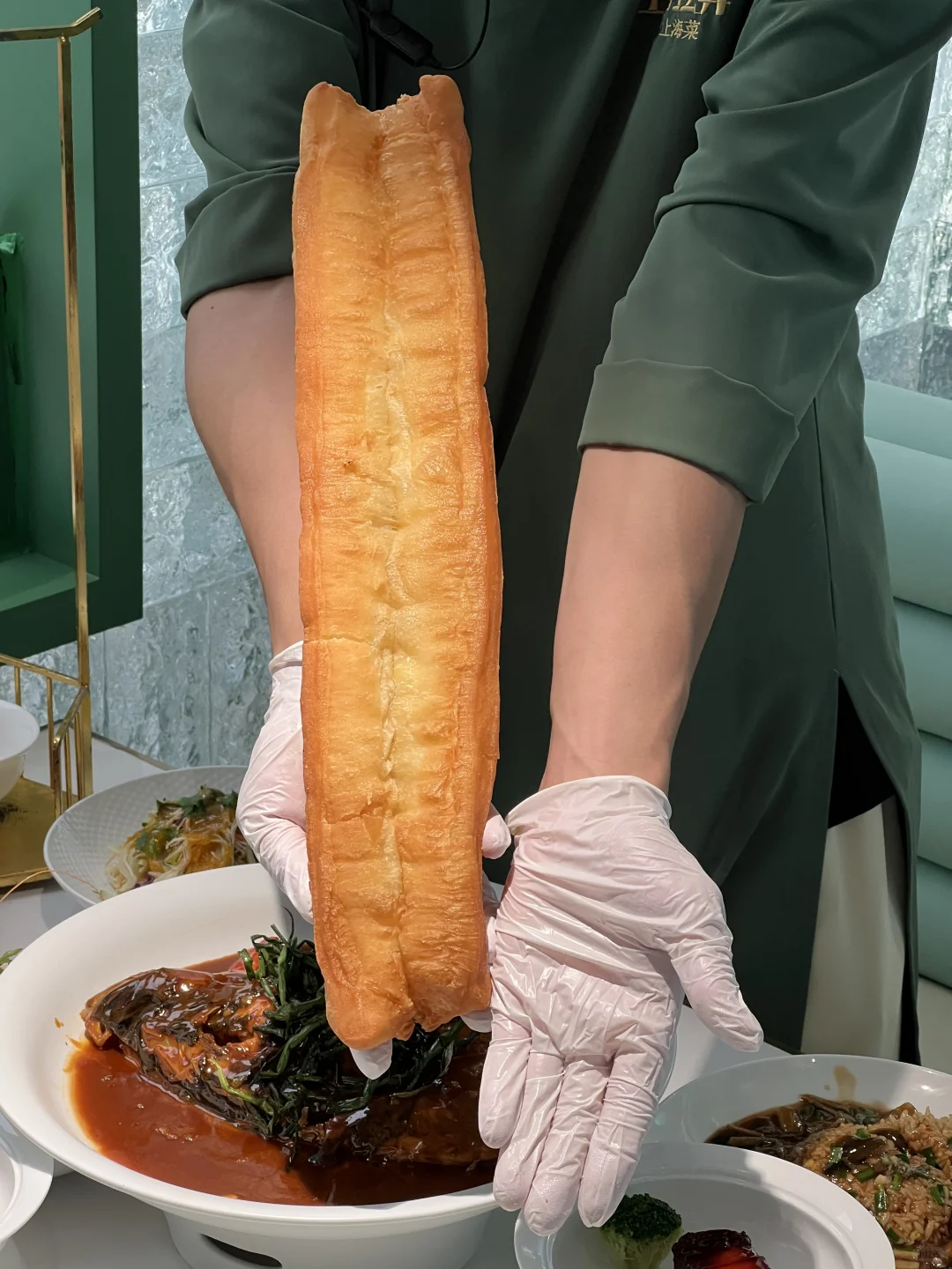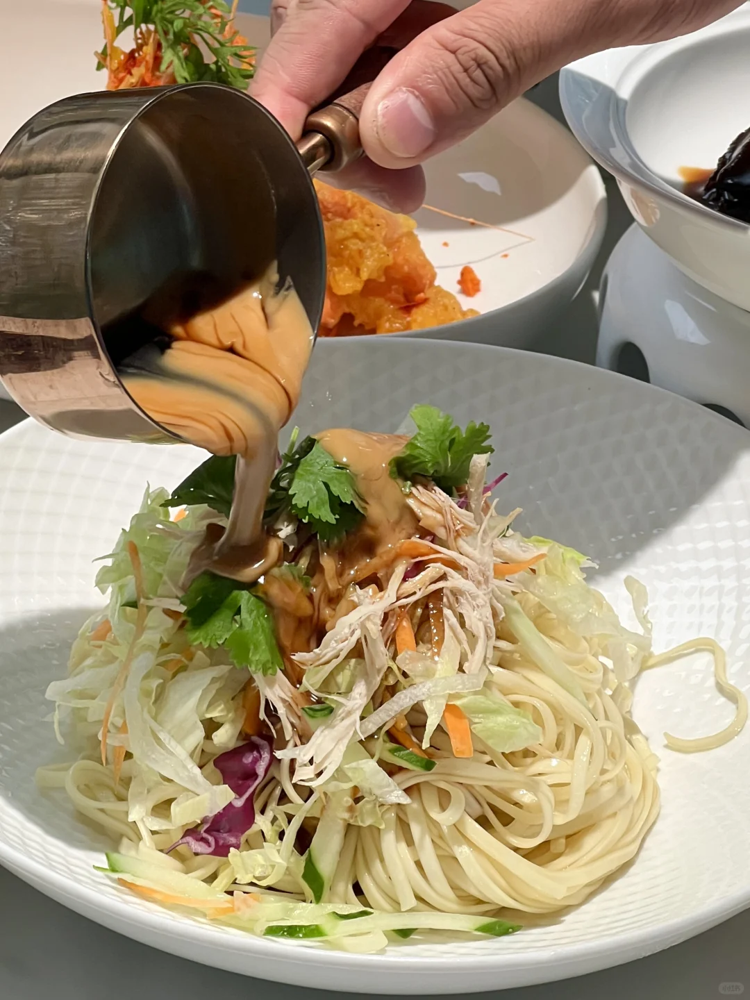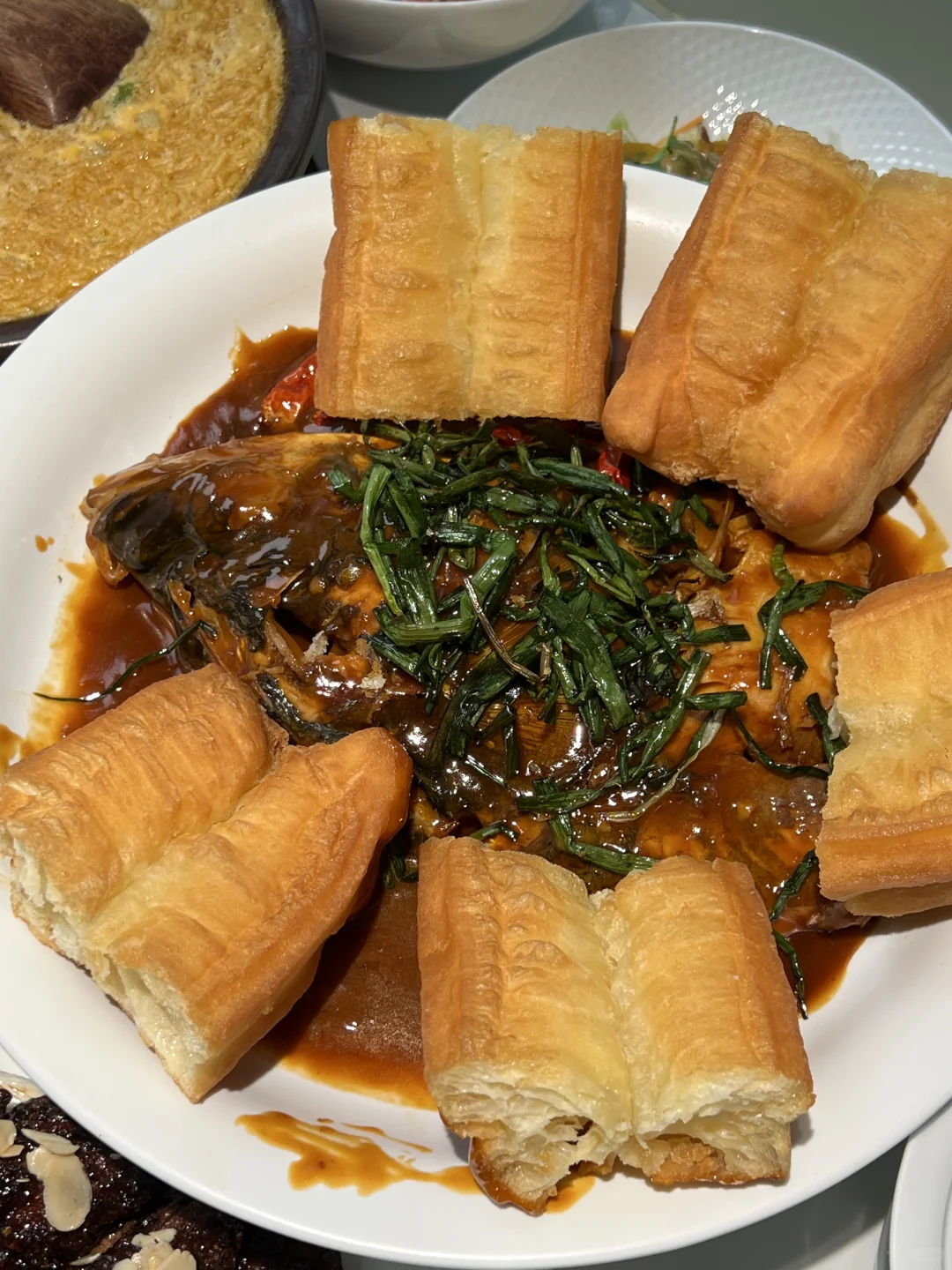 咸蛋黄麻酱鸡丝凉面、超级大的油条配鲜香的大鱼头、咸蛋黄脆椒大虾…味道都不错