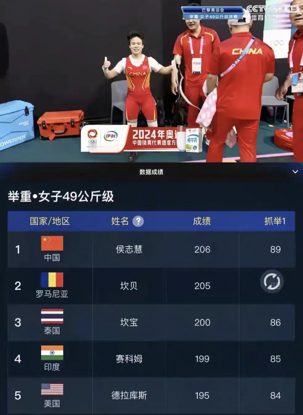 候志慧这一举就像当年占旭刚战神重现,落后对手五公斤,候志慧破釜沉舟把杠铃从110公斤加到了117公斤,最后一把力拔山兮,破纪录拿下金牌。真的是太激动了,看得所有观众手都在抖,心都吊在嗓门眼上了。好在有惊无险,候志慧赛后发文:“深夜给大家玩了一场心跳,给所有人磕一个对不住了”。没事,全国人民都相信你,相信举重队!#巴黎奥运会#