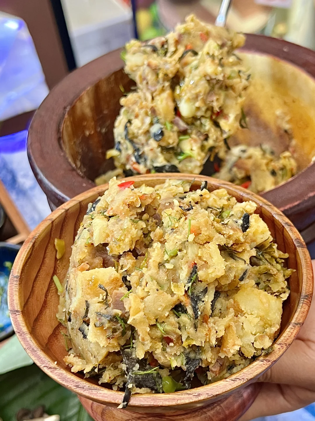 用云南菌菇链的顶端干巴菌做的土豆泥香拥了!!!