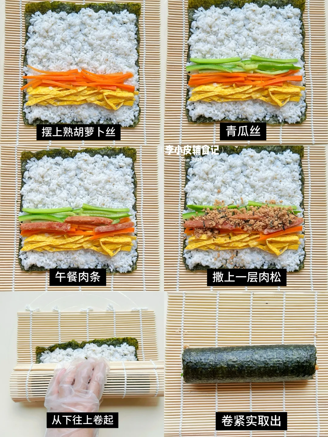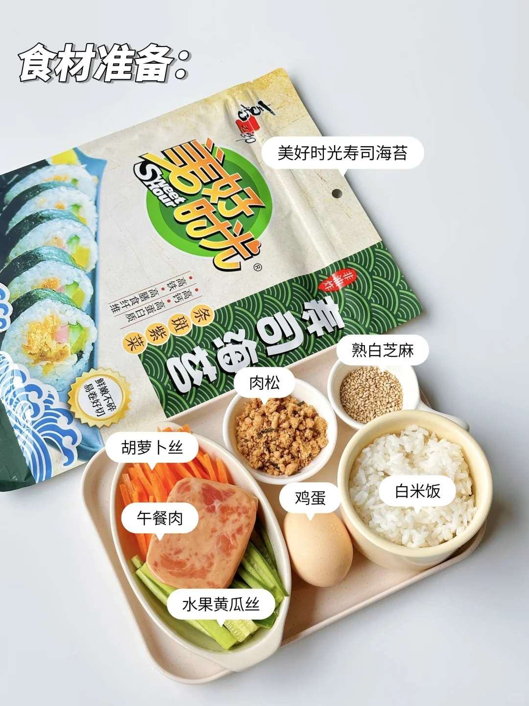 美好时光寿司海苔、鸡蛋、胡萝卜、水果黄瓜、肉松、午餐肉、白芝麻