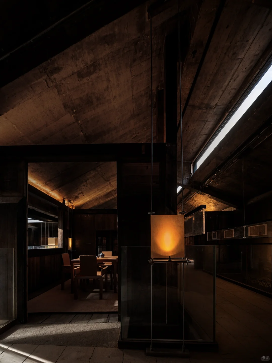 传统的天井以带有玻璃天顶的形式重新演绎,顶部的老虎窗引入相对稳定的自然光,且拉近了周遭环境与建筑的关系,隐喻着设计对在地性的关注。