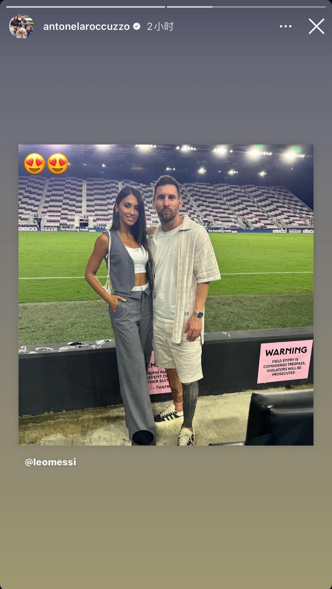 梅西ins晒与安妞看球合影:🩷🖤安妞转发:😍😍#梅西[超话]##迈阿密国