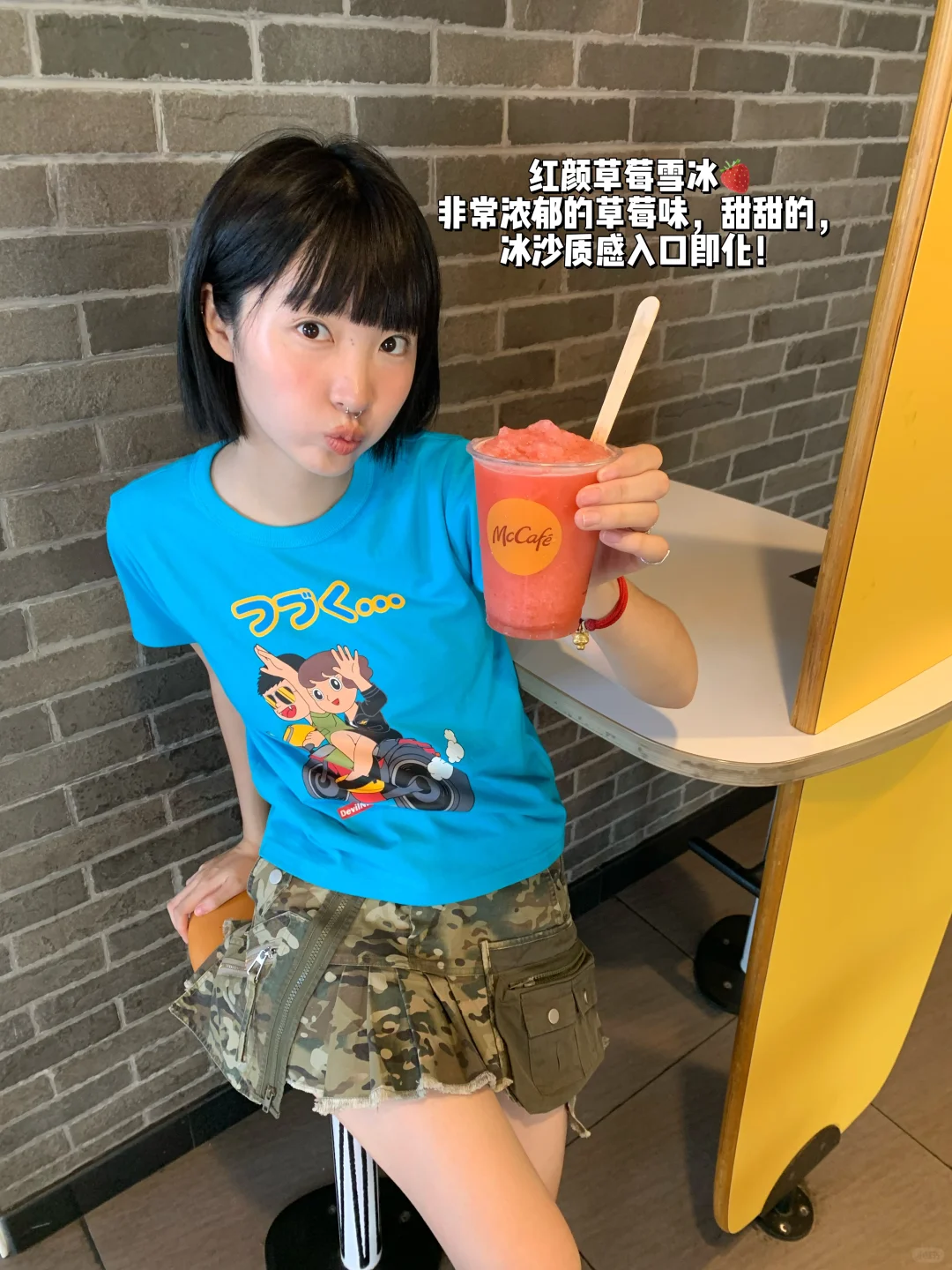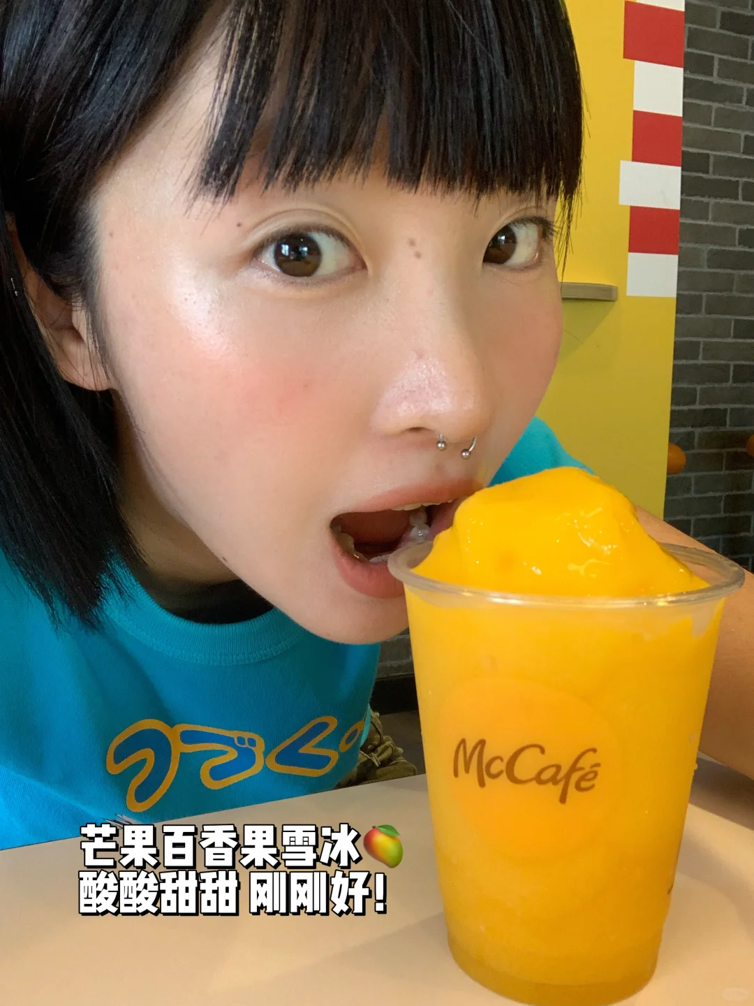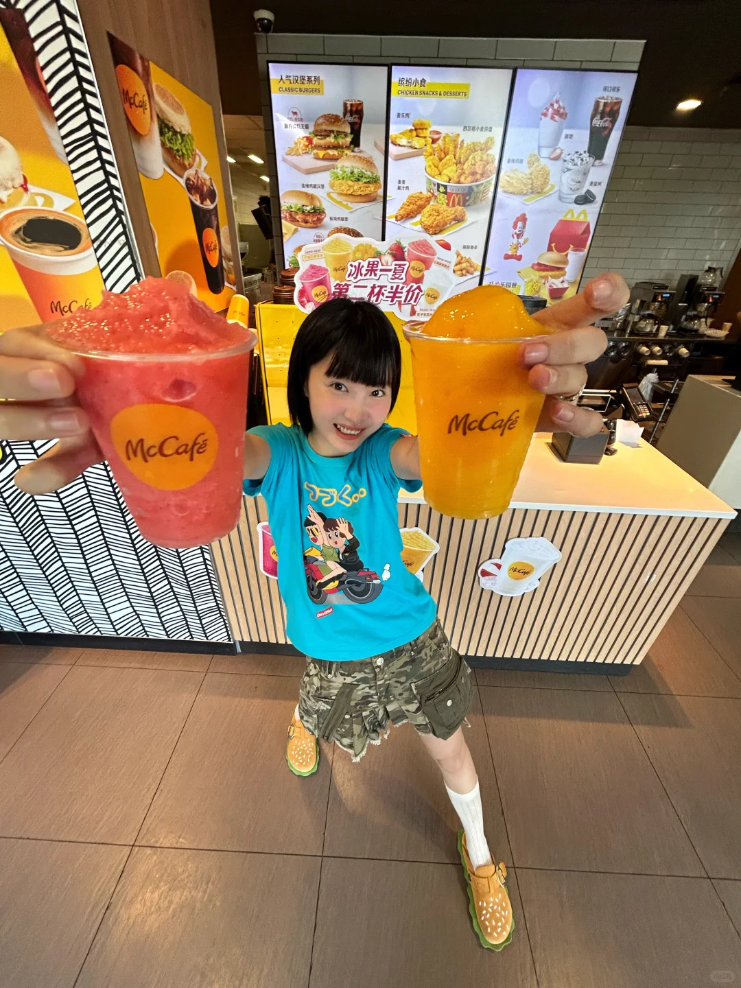 想到了麦麦新出的水果雪冰特别想喝 而且还买一送一!!就点了新出的红颜草莓雪冰🍓和芒果百香果雪冰🥭尝尝!