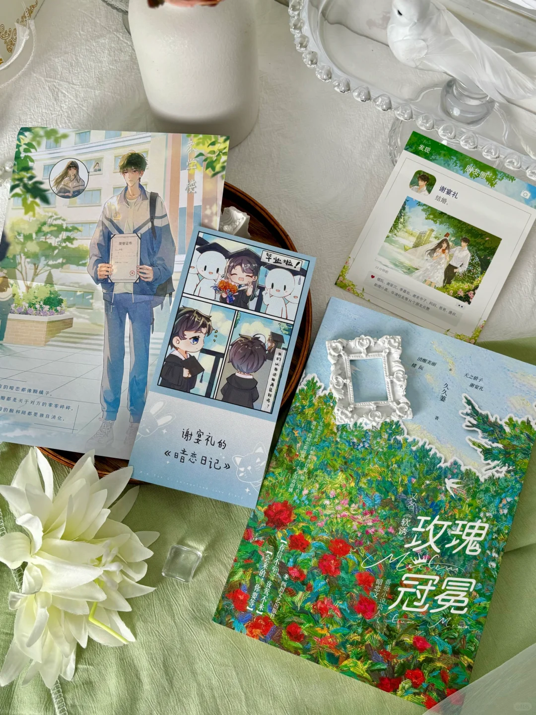 来看看《玫瑰冠冕》实体书的封面和内页实拍,清醒美丽楼阮&天之骄子谢宴礼,偏爱你的人可能会晚,但一定会来。