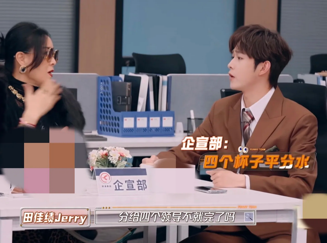 田嘉瑞:“你也是挺高情商,三瓶水找四个杯子,分给四个领导不就完了吗!第二个方法我直接给出来,如果是确定只有三瓶水,且不能找杯子的情况下,三瓶水放在四个领导中间,让他们自己分。”