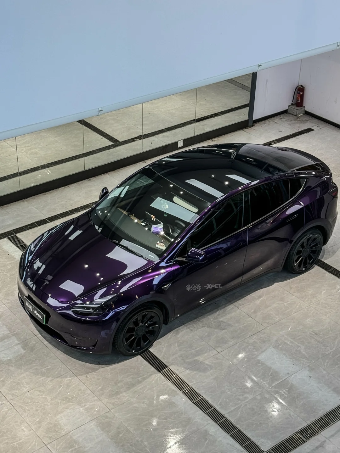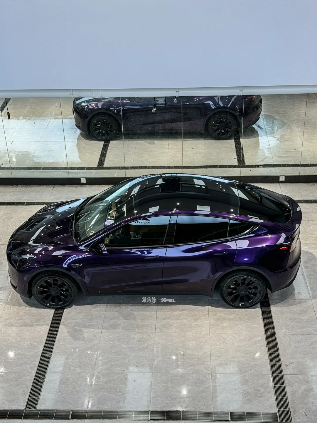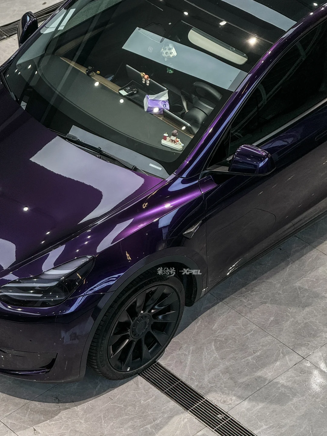 特斯拉Model Y披上金属午夜紫,简直是紫气东来,开在路上不是奥运冠军也自带光环,这波改色,时尚界都得让道!😍