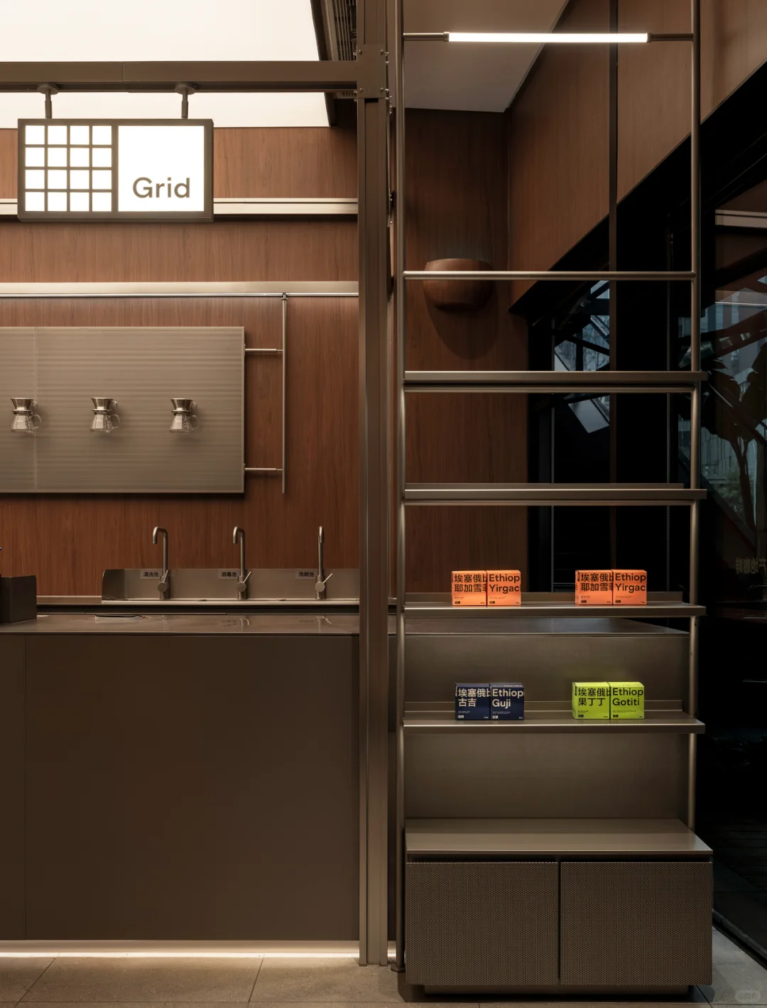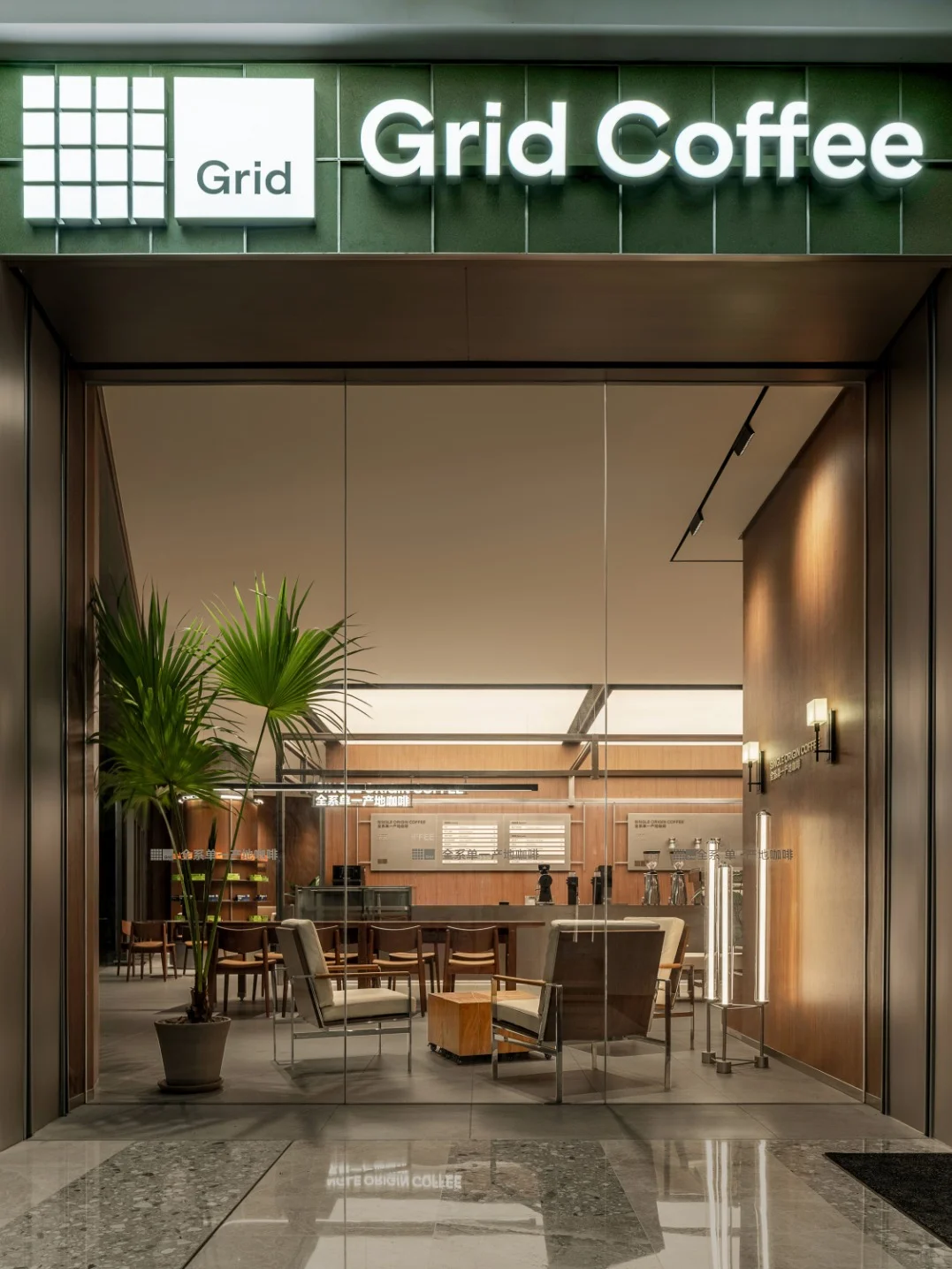 Grid是格子的意思,灵感来自平面设计里的网格系统「Grid System」。设计团队将网格概念融入其中,通过高低错落的网格图案,再现咖啡种植区那连绵起伏的山脉景象,同时赋予每个网格单元以独特的肌理,以网格绿为主色调,展现设计的独特韵味。