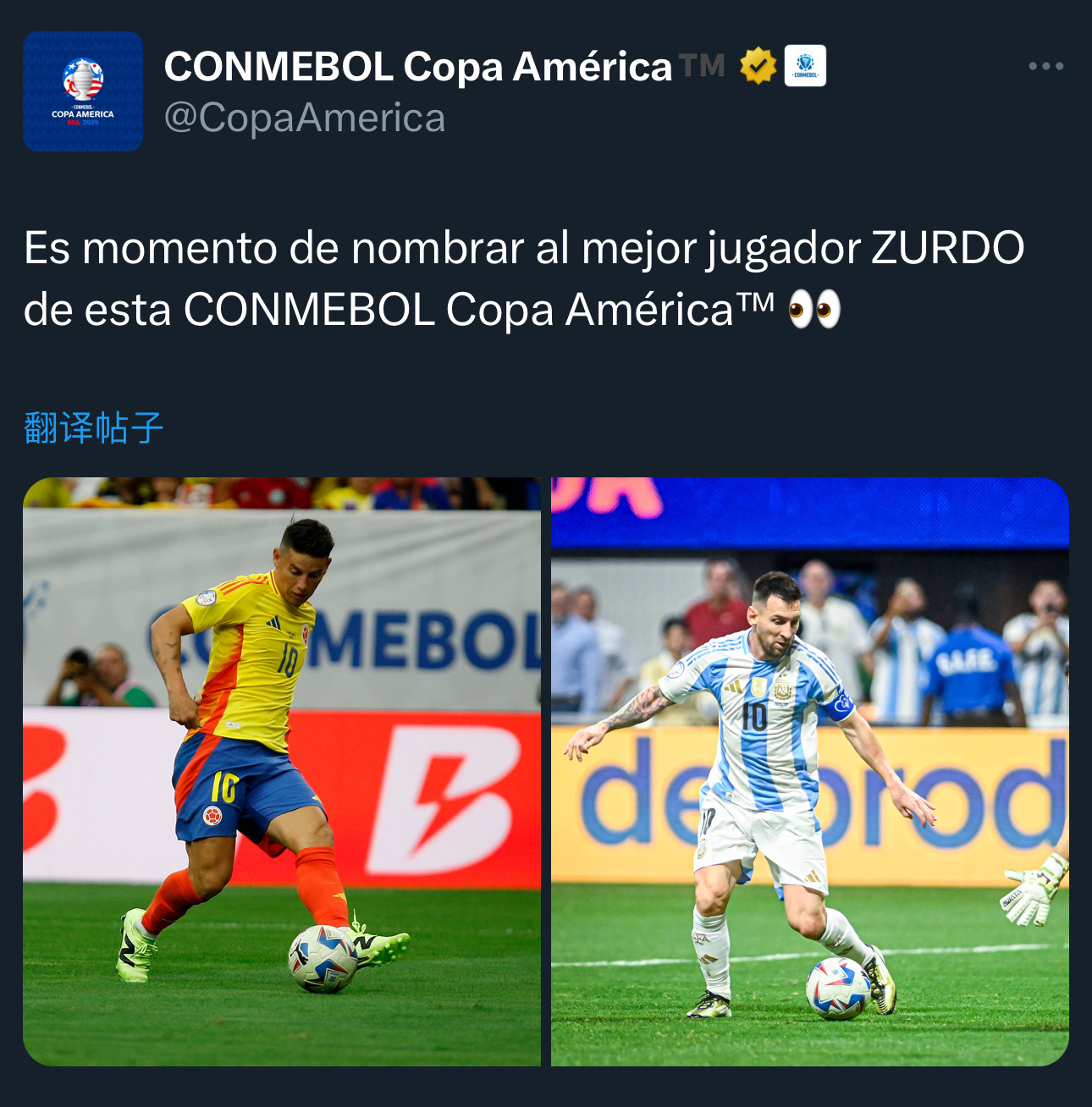 【这还有悬念吗[doge]】美洲杯官方:是时候评选本届南美洲杯最佳左脚球员了™