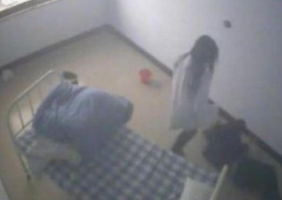 不仅如此,监控还显示,蔡霞睡觉时医护人员强行捆住她的双腿。