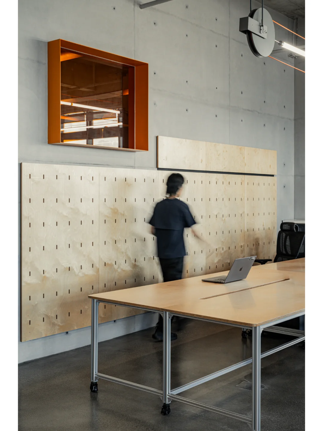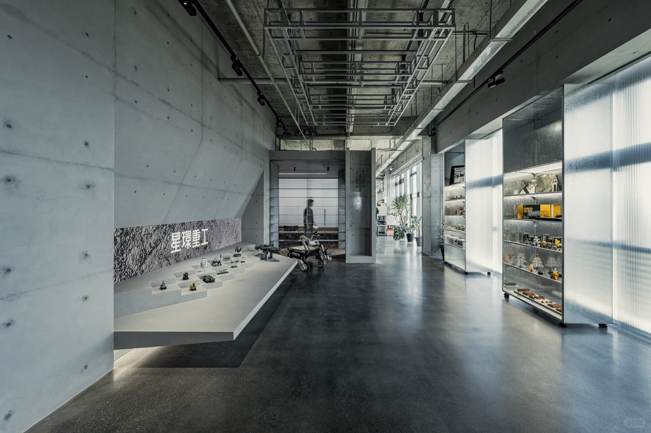 E Studio结合行业特殊属性和使用习惯,为星环重工的新场所进行规划。新改造的场地,内部除了办公区、会客室、会议室等传统空间,还有与模型行业相匹配的展厅、模型打印间、清洗间、装配间与喷涂间。