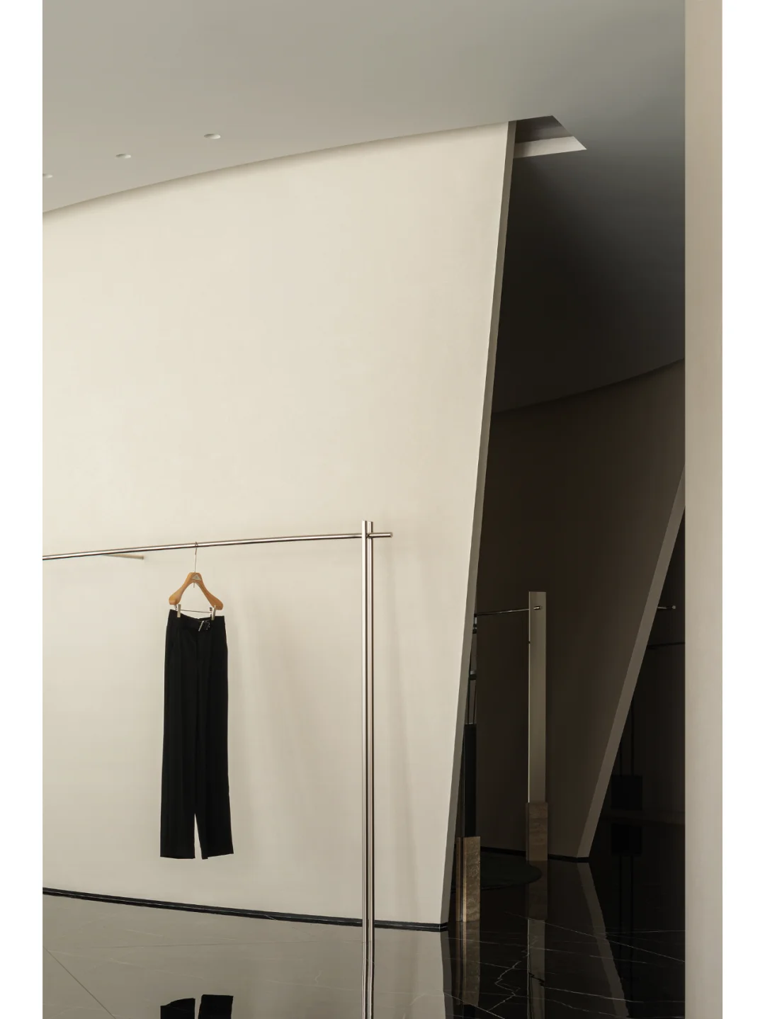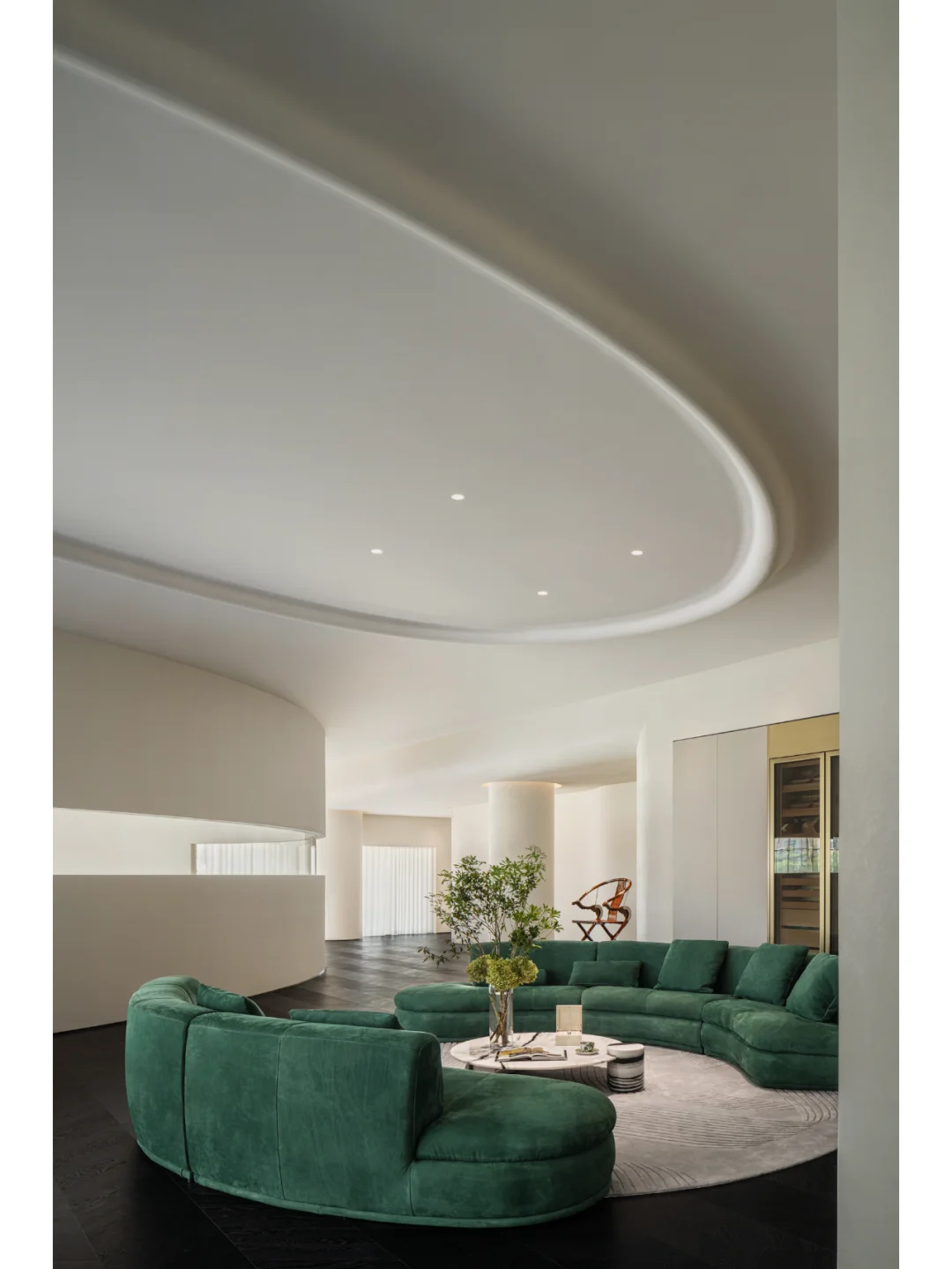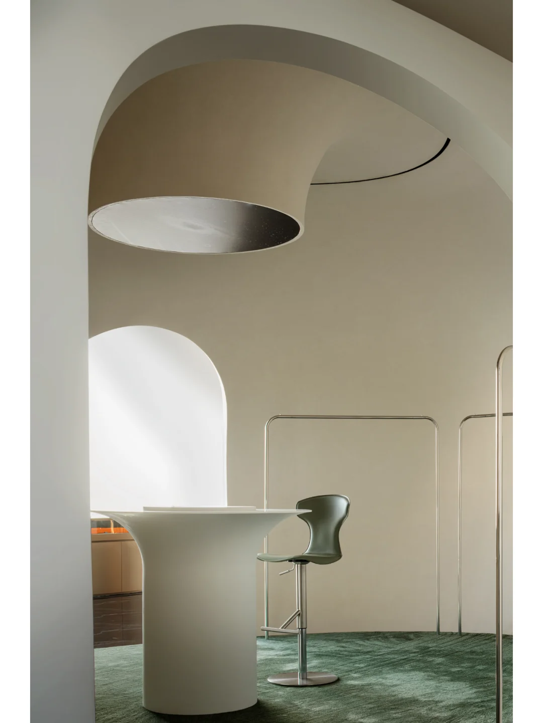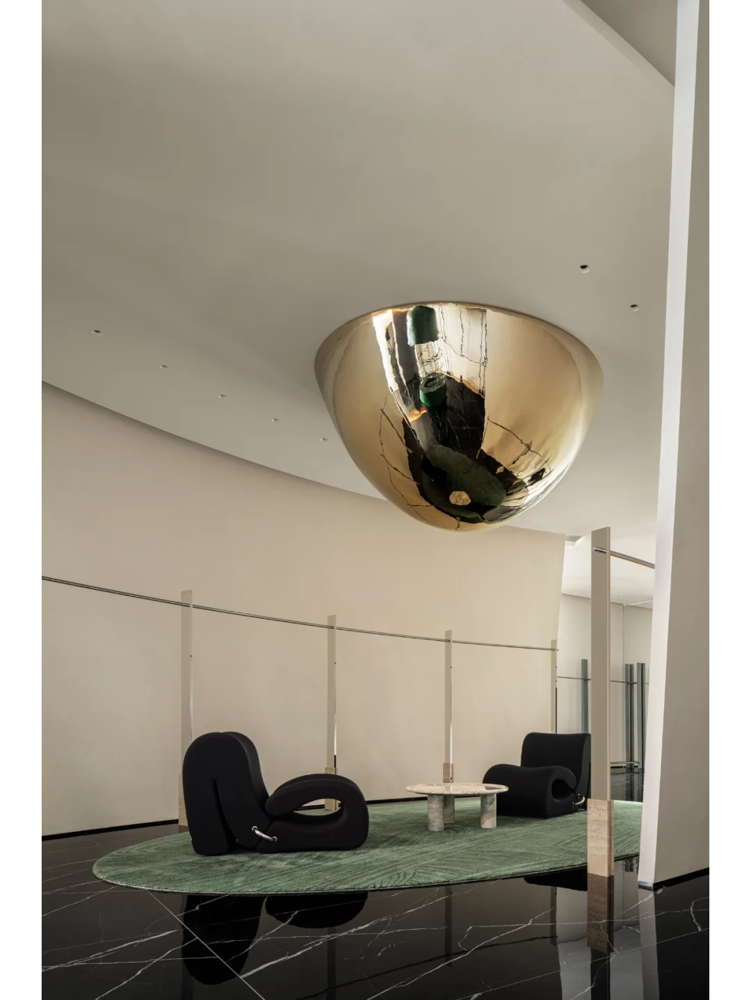 鉴于原有建筑形态先锋且具有力量感,MOOY木一小土设计团队以山茶花为灵感,在室内空间中转译“花瓣”形态,以打造柔美而灵动的丰富空间,与原有建筑形成一种戏剧性的反差,力量和柔美并存。