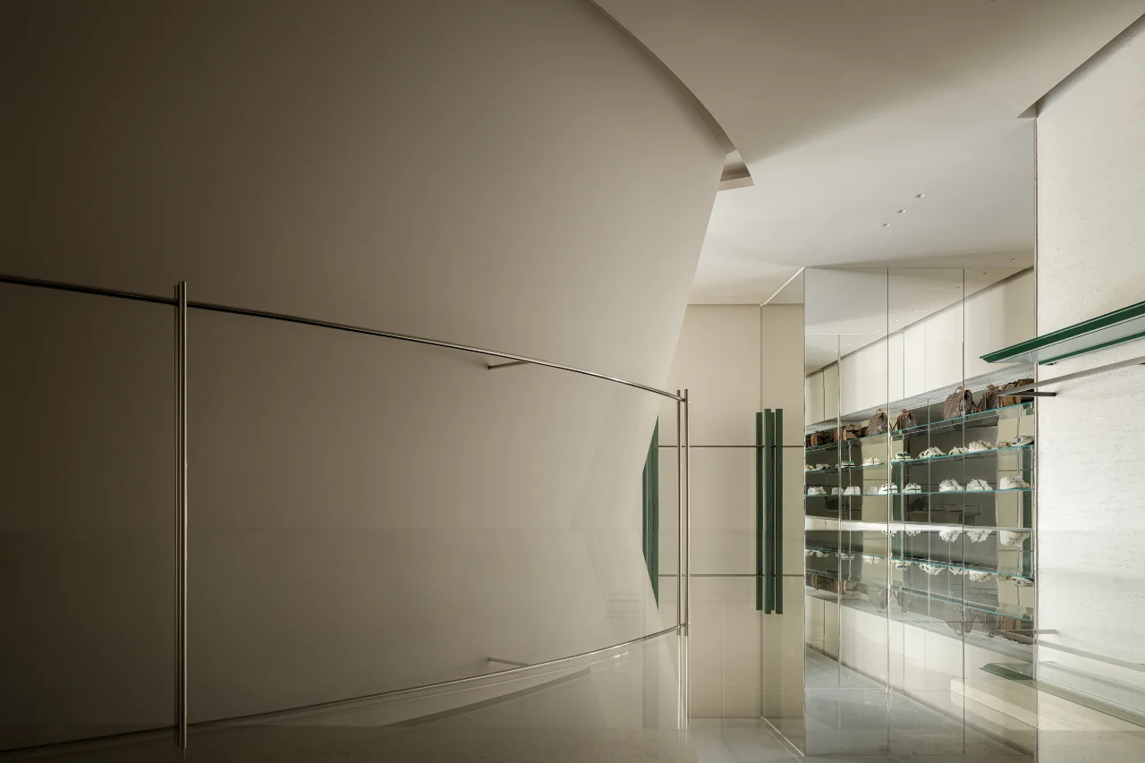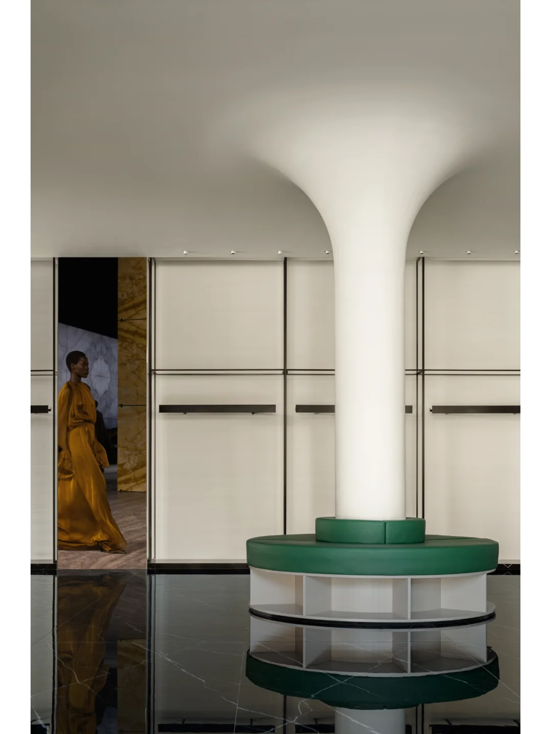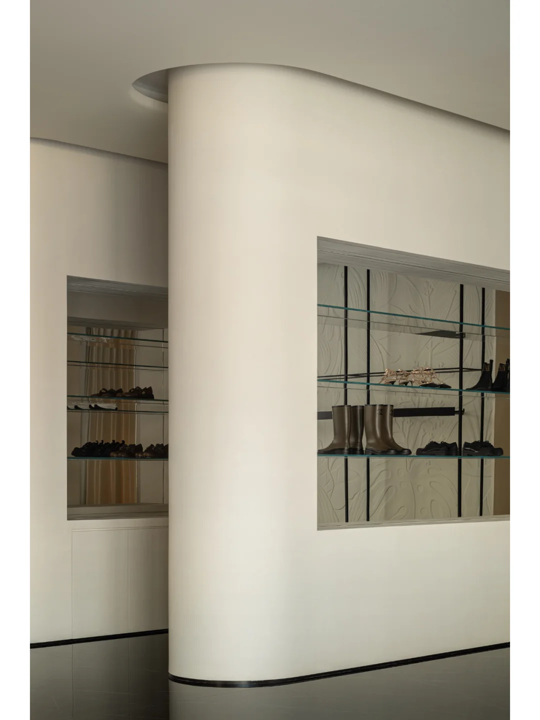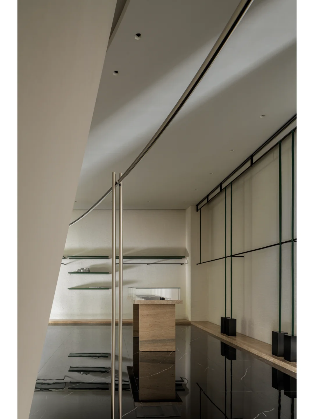 徕丽格旗舰店坐落于繁华都市的一隅,建筑原有的功能是售楼中心,总面积达2000平方米,一层为零售空间,二层为生活美学空间,专注于艺术品鉴赏、珠宝、高端名品沙龙等交流活动,上下两层各自演绎不同的奢华篇章。