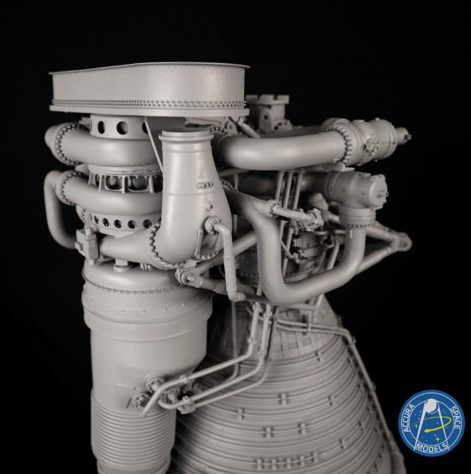 这台F-1火箭发动机模型会让很多硬核技术控爱不释手。当年正是F-1为实施“阿波罗”计划的“土星”V运载火箭提供了关键动力。作为有史以来推力最大的单燃烧室液体火箭发动机,F-1拥有一台燃气发生器,负责驱动涡轮为燃料泵和液氧泵提供动力。涡轮每分钟转速高达5500转,发出55000马力(41兆瓦)的强大功率,在它的带动下,燃料泵每分钟可以输送15471加仑(58560升)RP-1煤油,液氧泵每分钟可以输送24811加仑(93920升)液氧。工作状态的F-1每秒钟会烧掉3945磅(1789公斤)液氧和1738磅(788公斤)燃料,产生150万磅(670万牛顿/680吨)推力。虽然工作时间最多只有两分半,但5台F-1合力可以把“土星”V推到42英里(68公里)高度,加速到6164英里/小时(9920公里/小时)。F-1的喷管上部纵向密集排列着178根管路,一部分燃料会先经由这里向下流动,环绕喷管再返回,用燃料作为冷却剂对喷管进行冷却。涡轮废气通过大型锥状管路送往喷管,由于废气温度相对较低,可以在喷管内形成冷气保护层,保护喷管延伸段不被高温喷焰损坏。全3D打印拼装套件,比例1:12,细节满满,高488毫米,宽310毫米,重3公斤,手头十足,售价也扎实,590欧元。