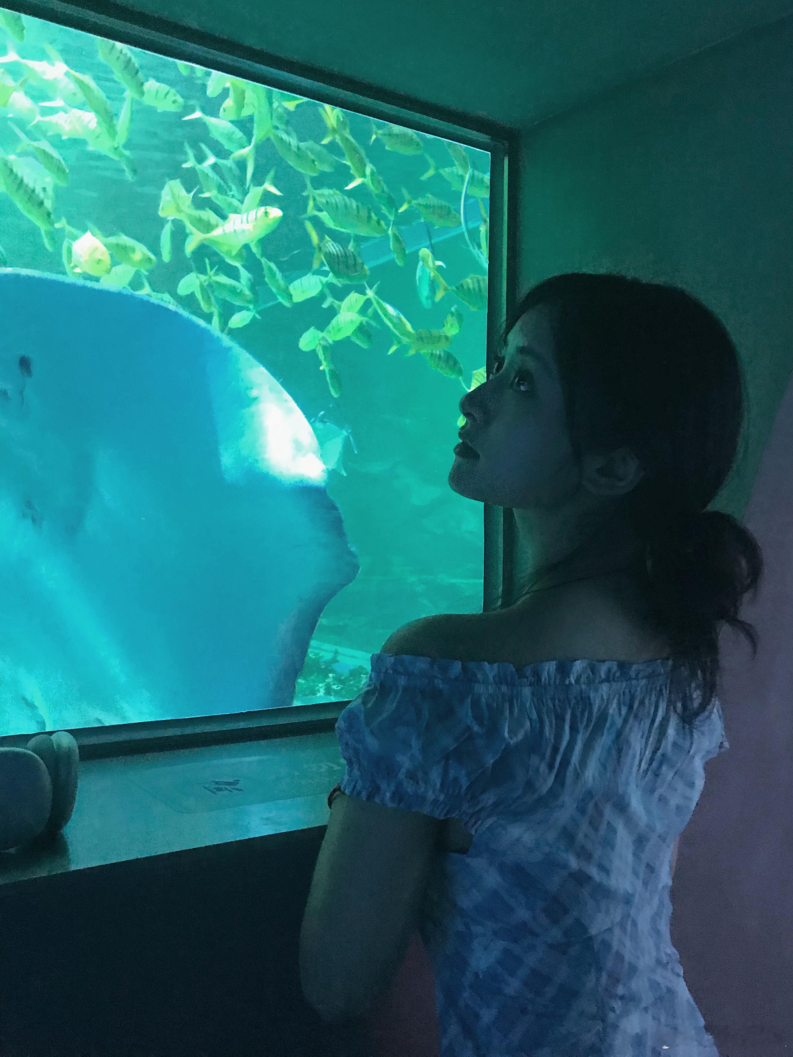 #沈月blue九宫格# #沈月V领碎花裙# 沈月在海洋馆的这组照片,仿佛是一幅绚丽的油画,色彩斑斓,充满活力。她身上的 V 领碎花裙,如同画中的主角,吸引着所有人的目光。