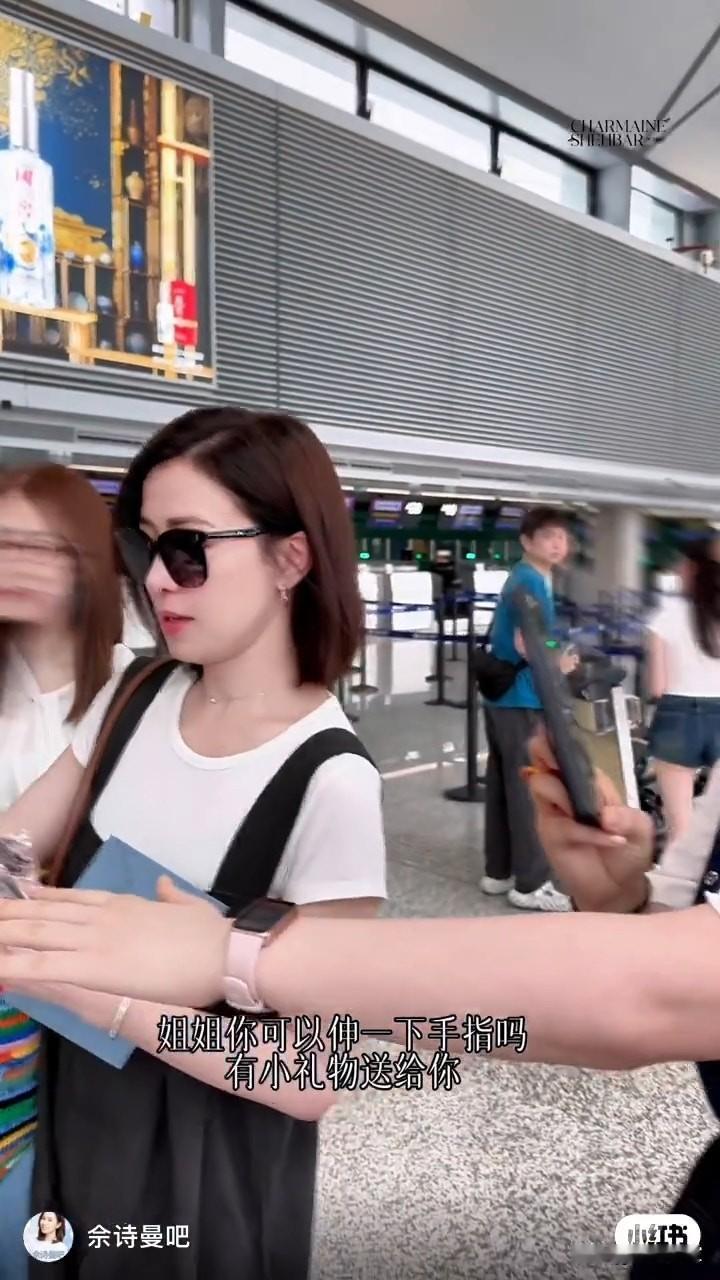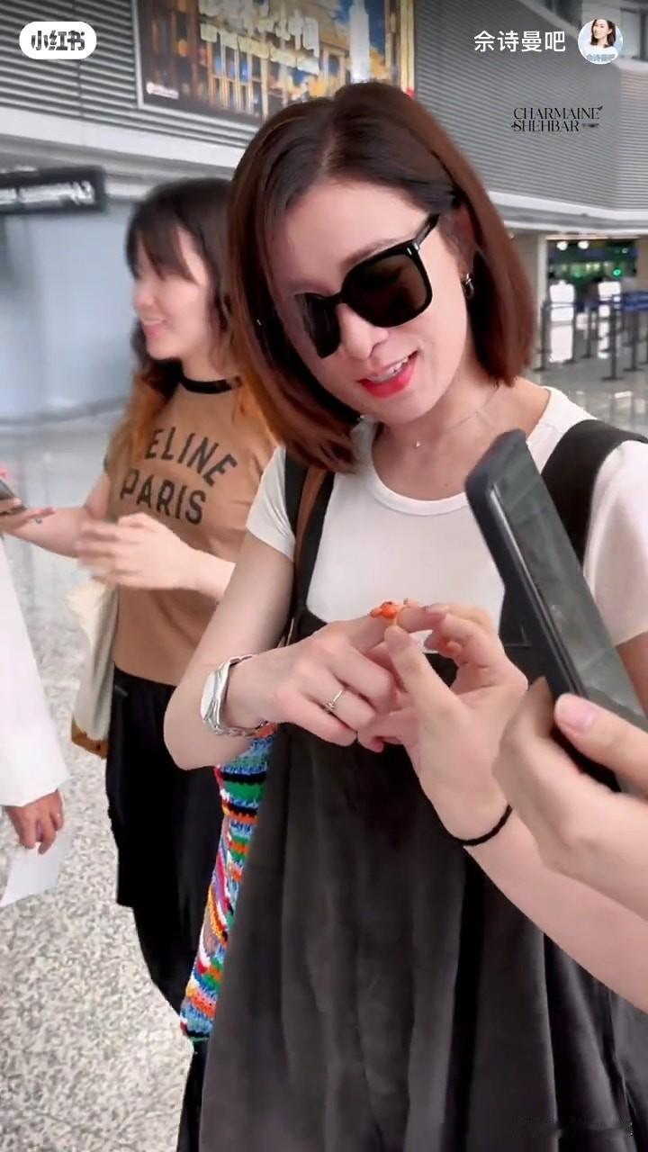 单身女王竟被求婚戴戒指甜笑say yes,男神收割机一原因错失良缘! 视后佘诗曼凭住去年热播的无綫台庆剧《新闻女王》入面饰演Man姐文慧心一角,成为了剧迷的焦点,令她人气急升,大受欢迎,她还凭该角色赢得今届无綫万千星辉颁奖礼的视后。即使剧集播完後,这股Man姐热仍未曾减退。月前播出的剧集《家族荣耀之继承者》更是令抢演女主角的佘诗曼人气再上一层楼,她无论在香港或是内地均人气高企,拍戏、综艺或广告、甚至直播带货等,接job接不停,赚个盆满钵满。佘诗曼事业得意,爱情却多年来一直空白,对外声称是单身的她,至今仍未遇到她的真命天子。 昨日 (19日) 有网民在社交网分享了一段佘诗曼现身机场的短片,并留言写道:「在机场被粉丝戴戒指啦 yes I do要讲几次,们蛇粉姊姊太会整活了,继颁奖典礼後又有粉丝给姊姊带戒指儿啦,每戴一次就是讲一声yes i do哦」。片中可见佘诗曼在机场出现,戴上太阳眼镜的她正伸手入手袋拿东西,突然有人在旁边走上前问她可否伸手。佘诗曼见状起初有些惊讶,但依然笑露友善微笑,并大方伸出左手,此时该名粉丝在她无名指套上戒指,佘诗曼即时展现出幸福甜笑,并对这位送上小礼物的女粉丝说谢谢。网民纷纷留言:「粉丝巴不得你嫁给她,哈哈」、「超好的曼曼也」、「好甜」。 佘诗曼於2002年与陈浩民因合作电影《情缘汽水机》时传恋情,佘诗曼曾表示陈浩民当年在内地发展,两人长期异地恋是分手主因,而非外界盛传陈浩民花心所致。佘诗曼又曾与郑嘉颖因合作《法证先锋II》而传绯闻,二人再合作《宫心计》期间又被拍到密会,当时郑嘉颖被指仍未与周励淇未分手。佘诗曼曾表示跟郑嘉颖开始时,男方是单身状态,两人性格适合然而时机不对,离离合合多次後最终分手,有传分手主因是郑嘉颖难接受佘诗曼事业比自己成功,财富上亦有很大差距。佘诗曼先後与过不少圈中男神蚀绯闻,早年她在访问中被问到其感情状况时,坦言:「我觉得好烦啊!哈哈哈哈哈哈」,因事业心重而错过不少结婚机会。#夏日生活打卡季#