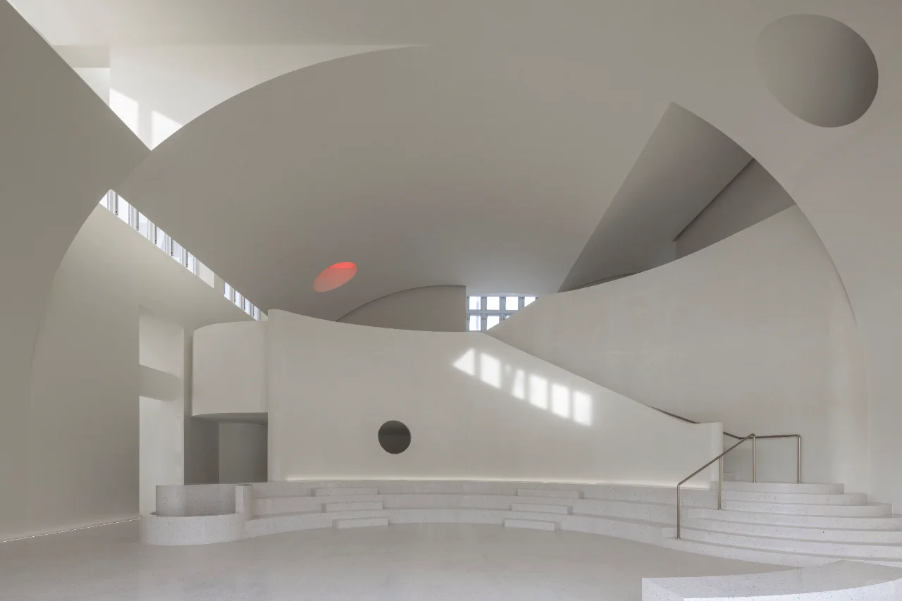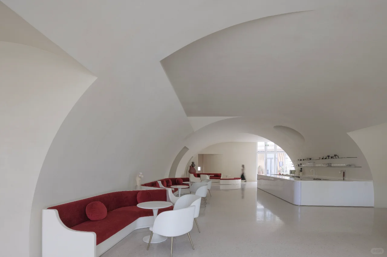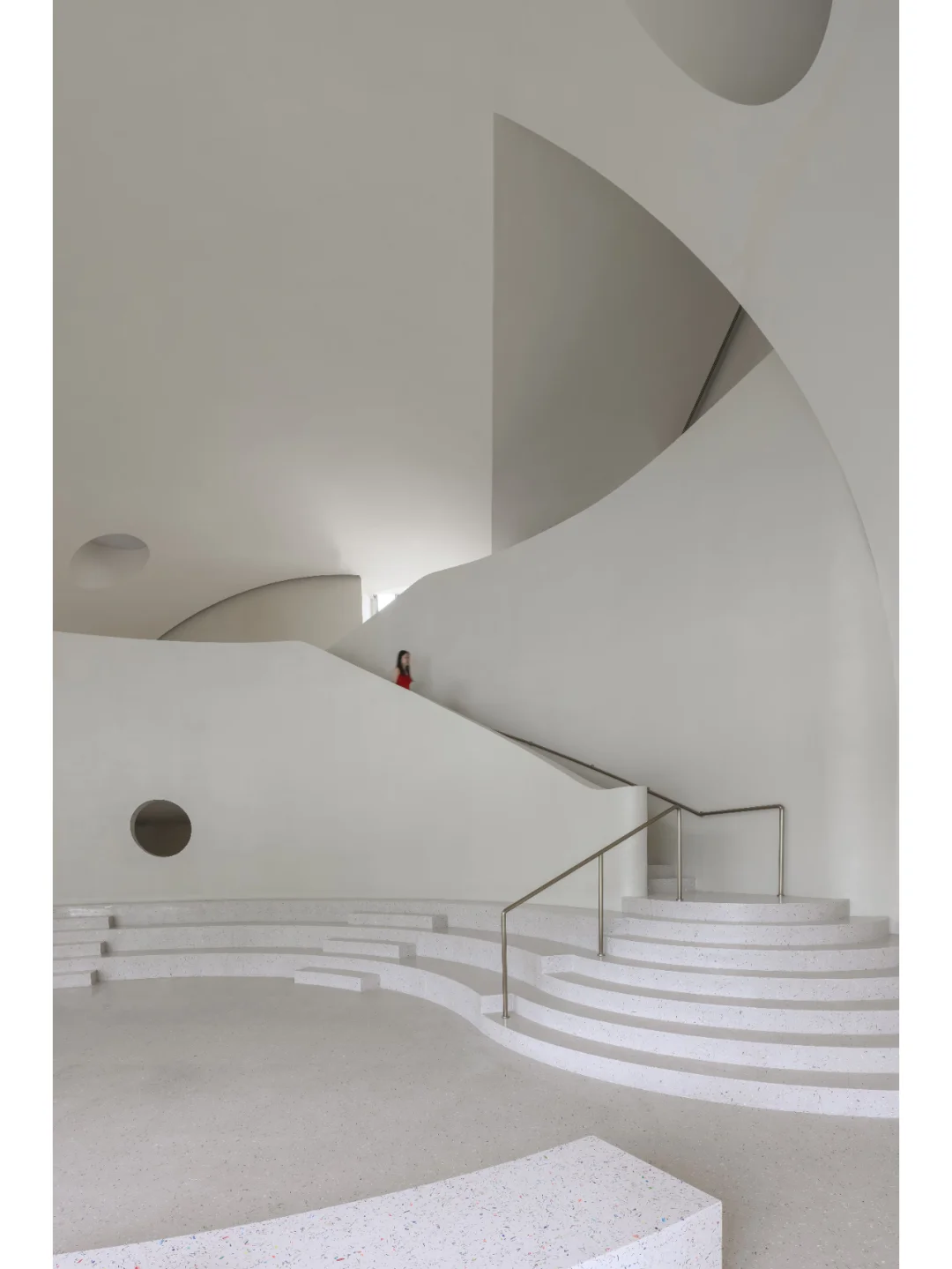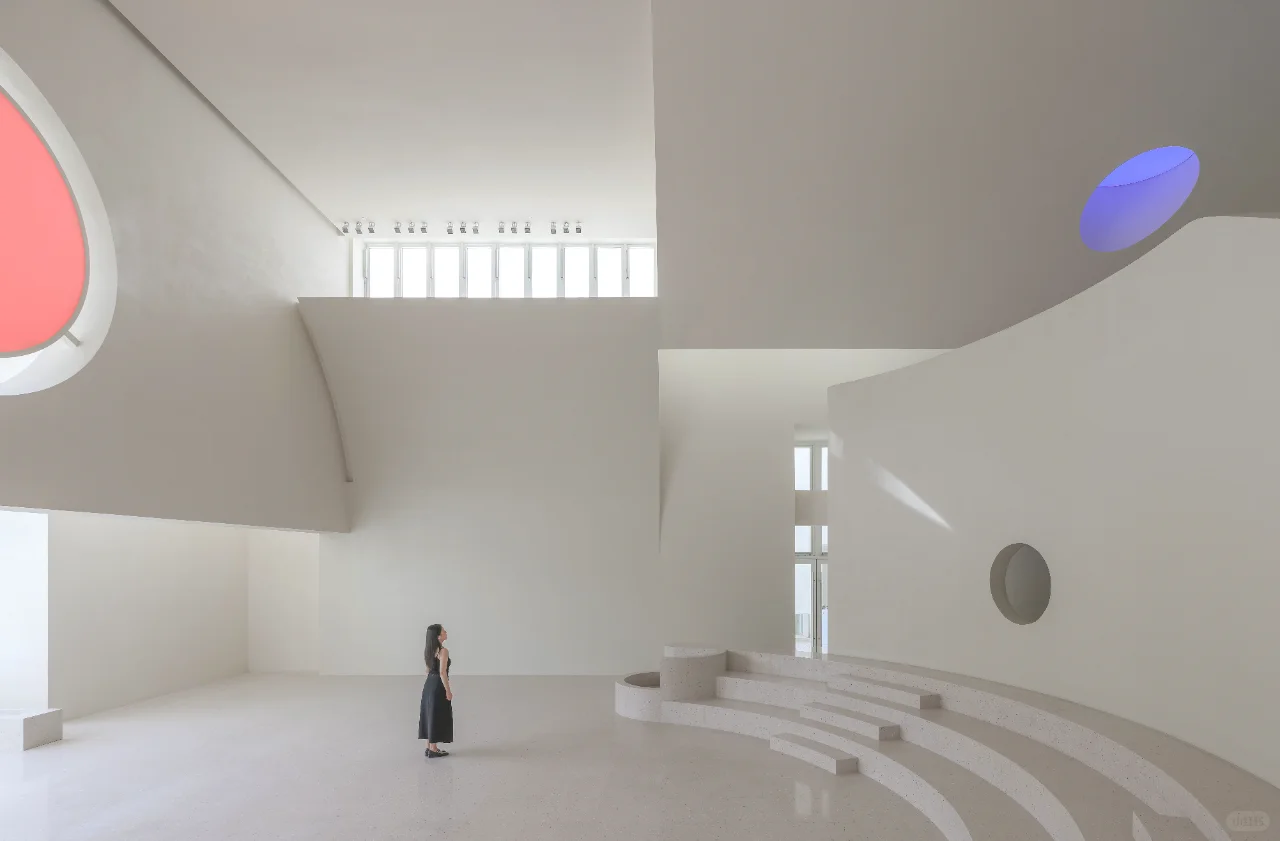 🏙️ 山洞和拱形大厅,山路和户外楼梯,太阳和玻璃圆窗,洞口和天光,膜结构和树荫,水渠和造景,海子和水池,沙滩和地面,悬崖和平台,自然被抽象后结合建筑部件形成一组组互文的文本,镶嵌成艺术中心和山这一组超级互文本。