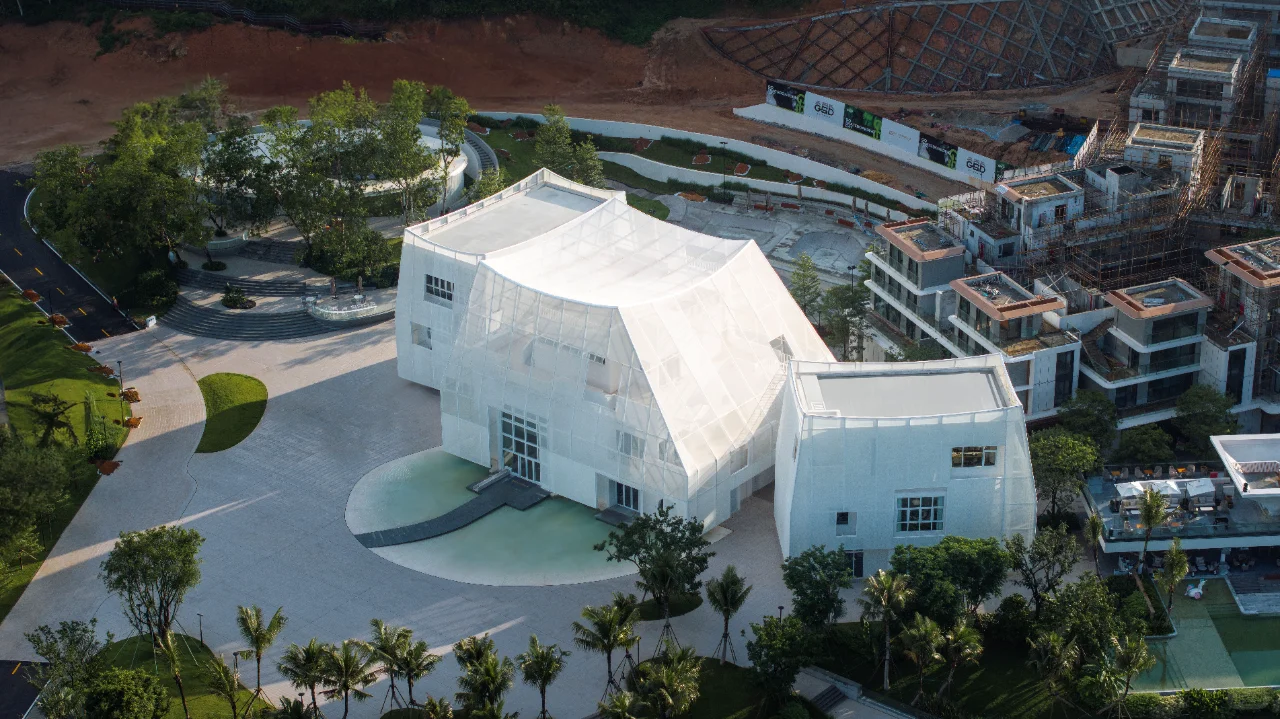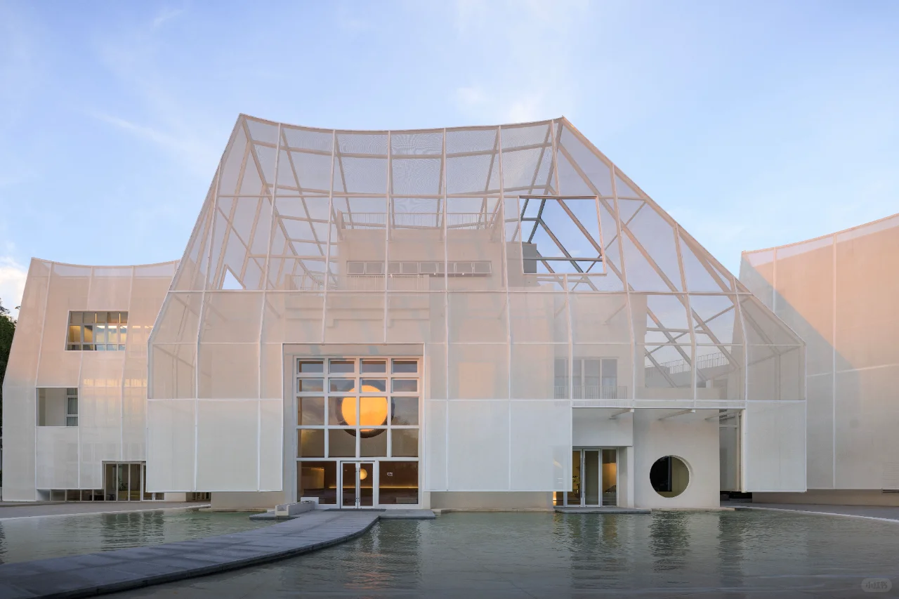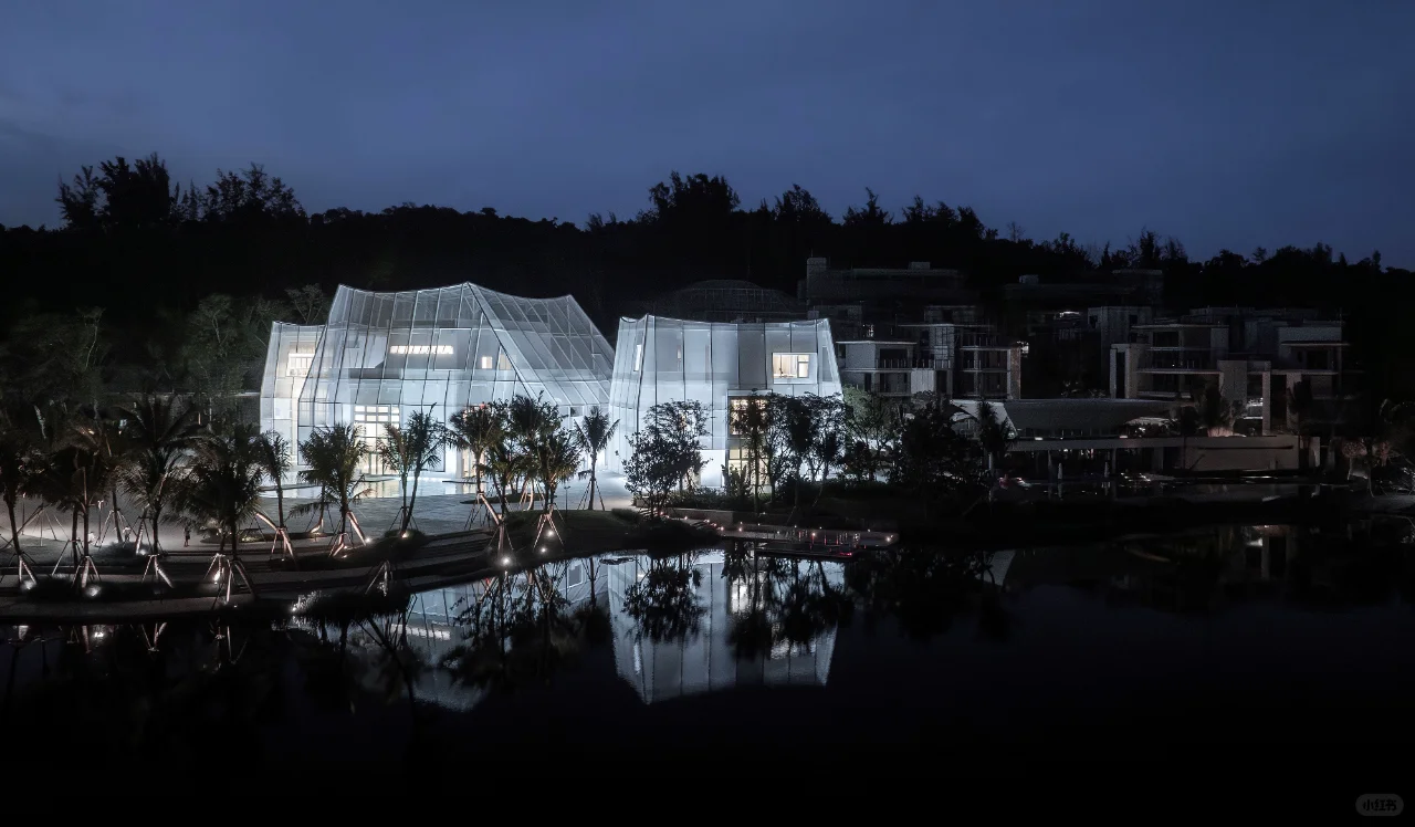 🏙️ 2024年,Wutopia Lab 设计的玉山岚峰:由三种穿孔率组合的半透明白色法拉利膜包裹的正大太阳河咖啡小镇艺术中心在海南万宁落成。在印尼归国华侨开拓的咖啡种植园上的艺术中心,以日夜交替的戏剧性视觉表达,成为当地一个象征奇迹和希望的文化地标。