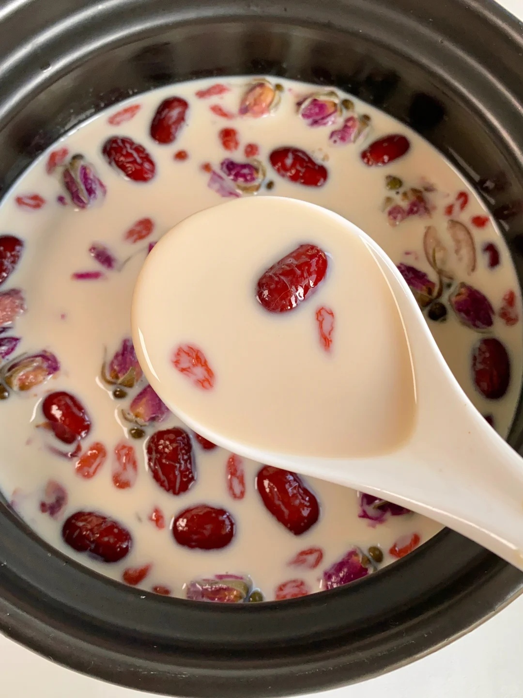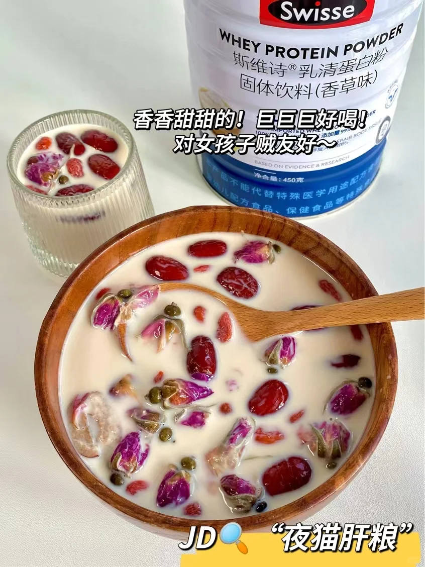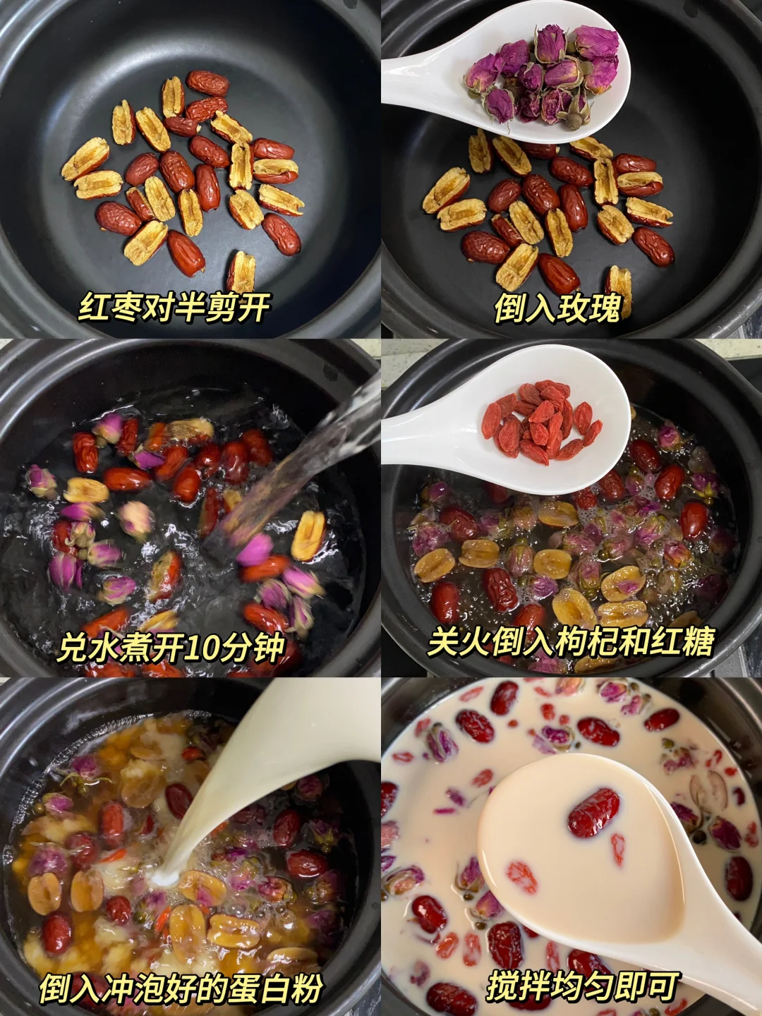 📝食材:红枣、枸杞、玫瑰、红糖、蛋白粉