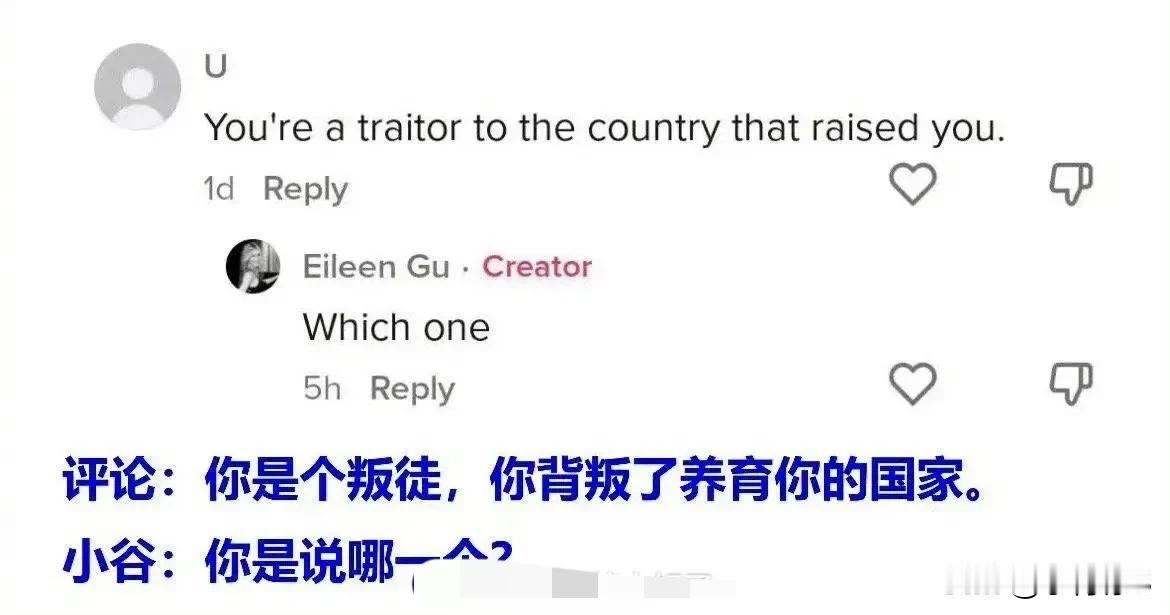 谷爱凌正面刚黑粉了,分别发了中文版和英文版,对抗来自国内和国外的所有黑粉。 起因是一位网友在她的Ins上留言,她直接回怼:你说的是哪一个? 紧接着在小🍠上发文历数自己为国家做过的事,质问黑粉为国家做了些什么! 紧接着在外网平台又针对白人发布一条怒斥对方闭嘴,称他们还不够华裔、白皮! 她的这一举动让粉丝很欢喜,这说明谷爱凌并没有被传言所困,做出了反击。 但也有网友觉得她虽然做了反击,但是对于大家的质疑她也是一个没回应啊,就比如她与马尔尚的关系。 真没想到谷爱凌国内外都有黑粉,两边不讨好的情况下,她的心理素质还真够强大的。 #谷爱凌硬刚黑子# #爆料# #妙笔生花挑战赛#