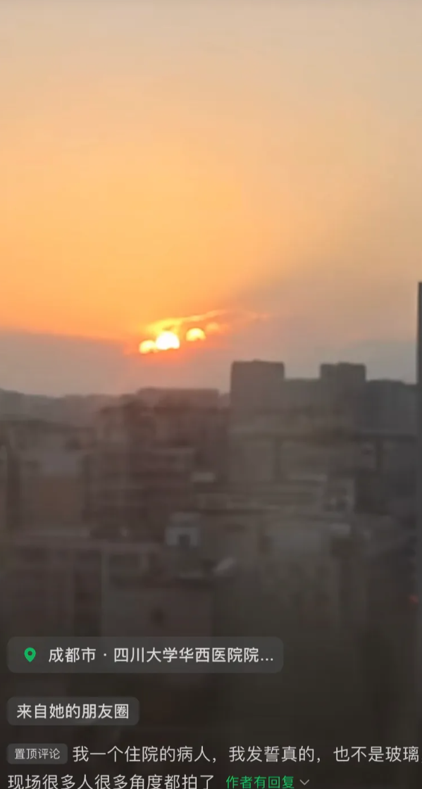 8月18日,四川成都竟然出现了六个太阳的奇景。拍摄该视频的网友发誓称,这六个太阳是真的,也不是在玻璃后面拍摄的,而且现场也有很多人及很多角度都拍了......