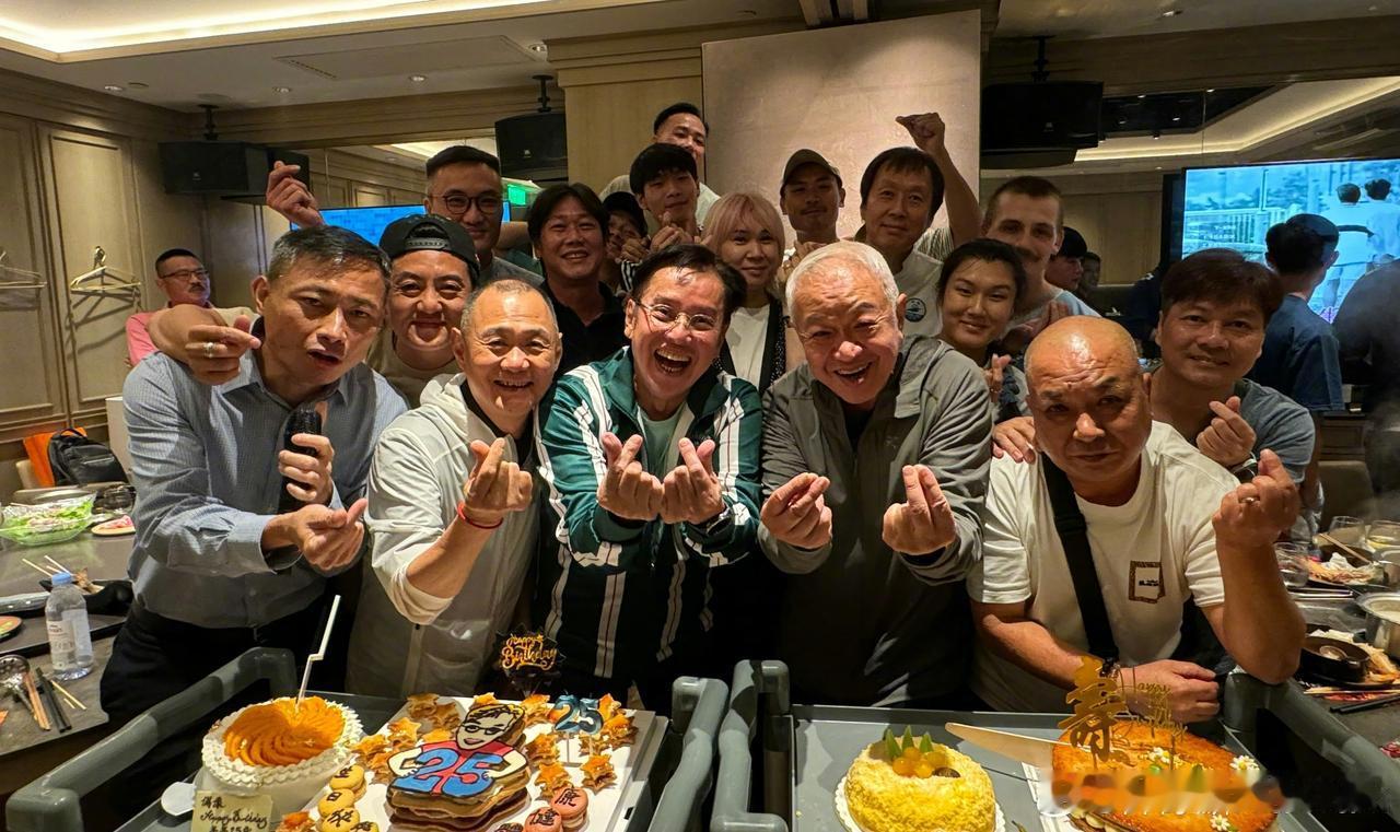殿堂级巨星谭咏麟74岁生日,雨中作赛湿透ALL BACK晒寿星公发线! 7月23日迎来了乐坛殿堂级巨星谭咏麟的74岁生日。这位被誉为“年年廿五岁”的不老传说,在完成海外演出后马不停蹄地参与了一系列生日庆祝活动,展现了他不减当年的热情与活力。 日前,在星马演出归来后,谭咏麟不仅享受了与好友的聚餐,更是在雨中与晨曦足球队的队员们踢了一场充满激情的足球赛。尽管大雨倾盆,他依然全力以赴,甚至在比赛中射入两球,令他兴奋不已。雨水打湿了他的头发,让他的发线一览无余,却也映照出他灿烂的笑容。 赛后,谭咏麟与近30位球员及霍建宁等人一同前往一家星级火锅店,享受了一场别开生面的生日聚餐。寿星身穿墨绿色外套,内搭一件印有蛋糕和“Happy Birthday”字样的薄荷绿上衣,显得既时尚又充满节日气氛。一个Q版公仔抱着标有“25”的蛋糕,仿佛在提醒着谭咏麟永远年轻的心。 谭咏麟对这个特别的生日蛋糕显得非常满意,他在合影中的笑容比蛋糕上的蜡烛还要灿烂。这一天,他不仅以足球赛的热血和朋友聚餐的温馨庆祝了自己的生日,更以一颗永远年轻的心,感染了身边的每一个人。#夏日生活打卡季#