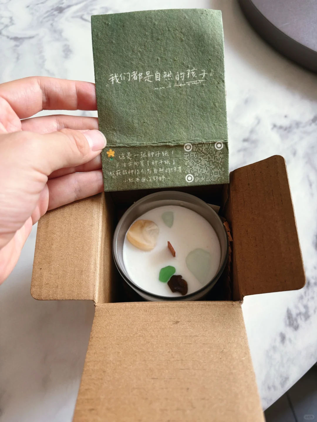 废物利用♻️——蜡烛上的海玻璃是人造玻璃失序废弃物,经过川流汇集至大海,随后由海浪经过漫长时间的冲刷、侵蚀形成的「自然艺术品」。