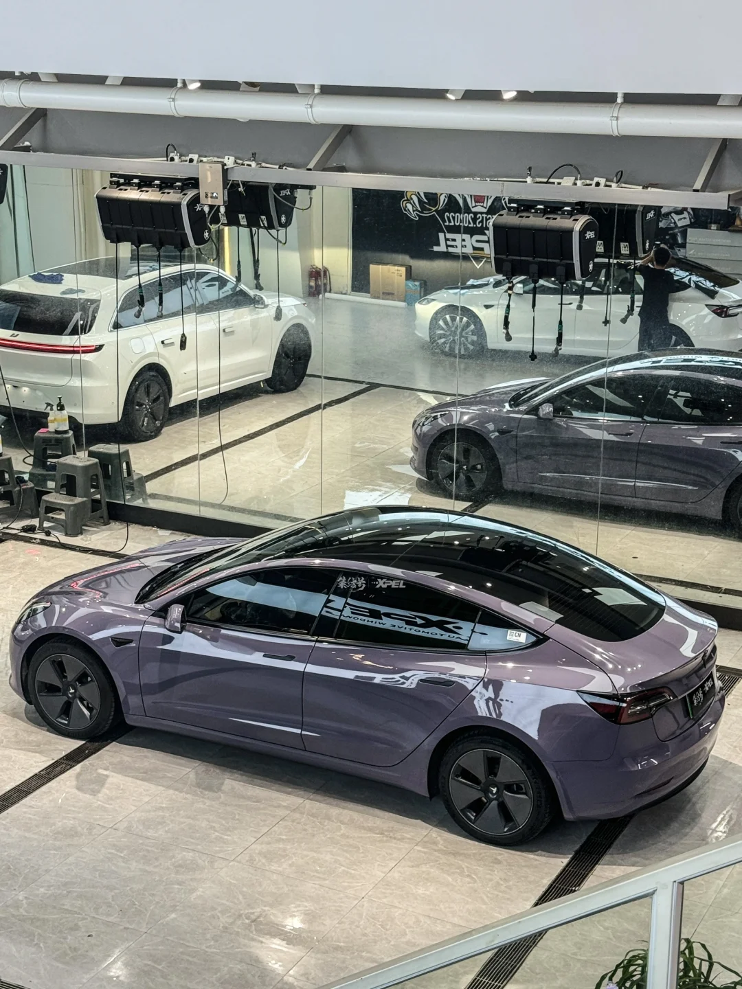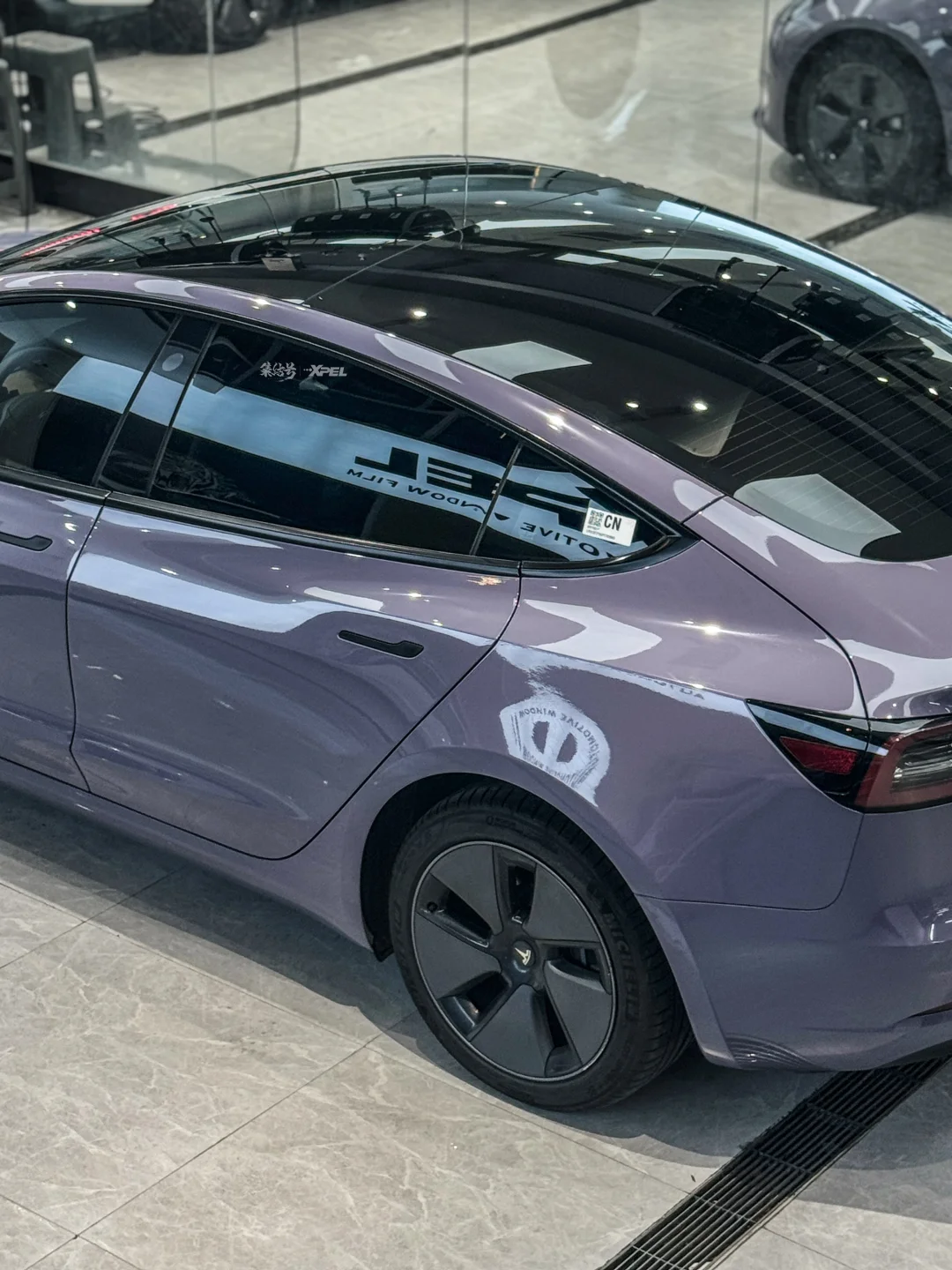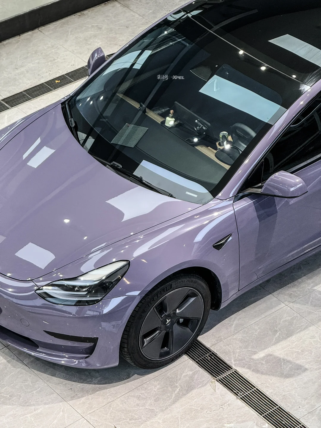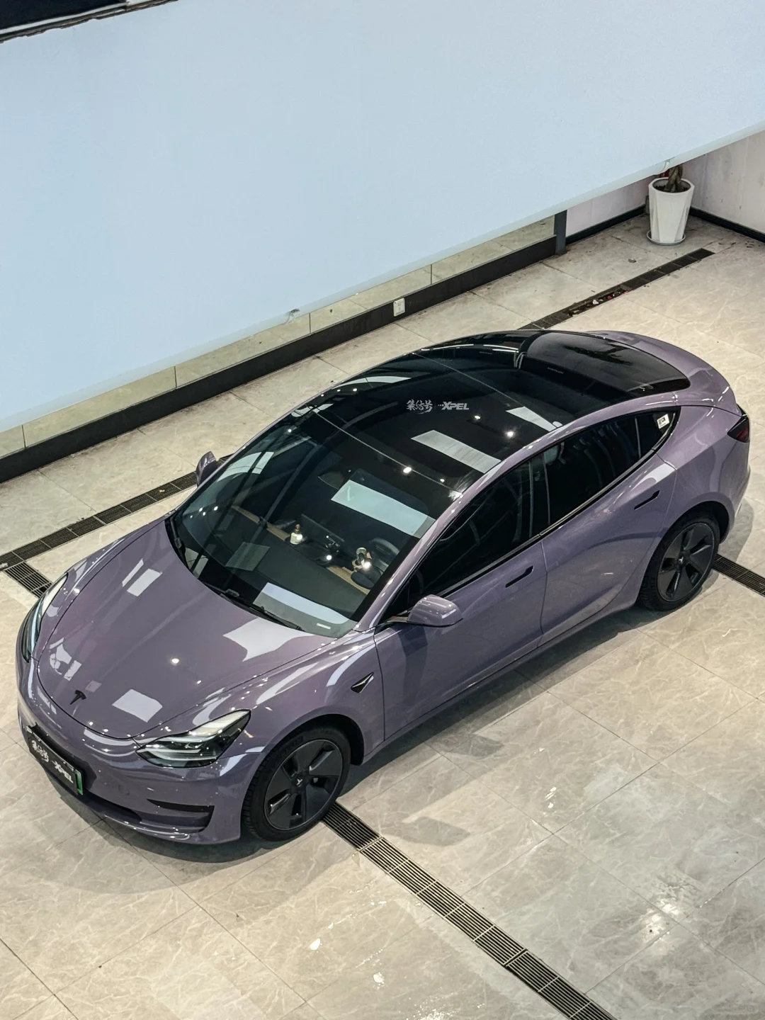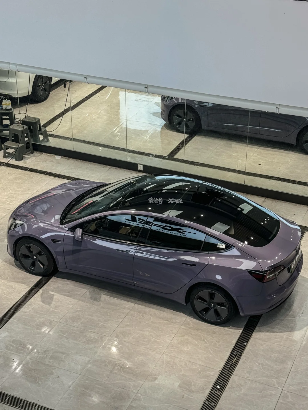特斯拉Model 3换上这紫色膜,低调奢华有内涵,走在路上绝对是吸睛利器啊