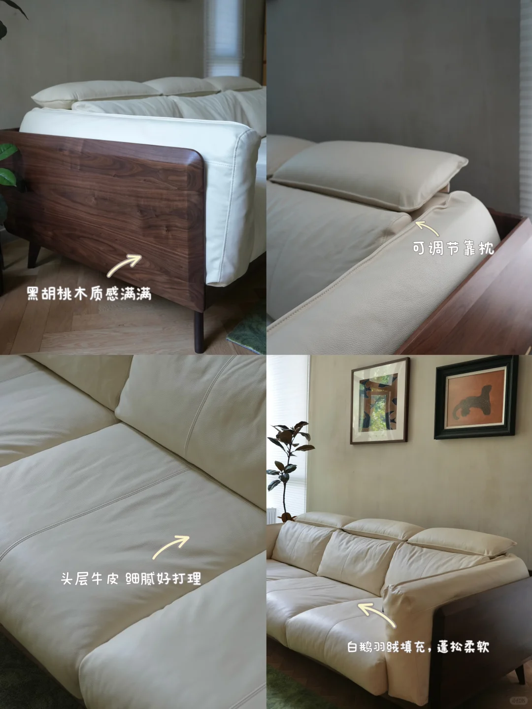 我家沙发是选的源氏木语黑标系列的黑鲸沙发,黑胡桃木+乳白色真皮,让客厅充满质感~