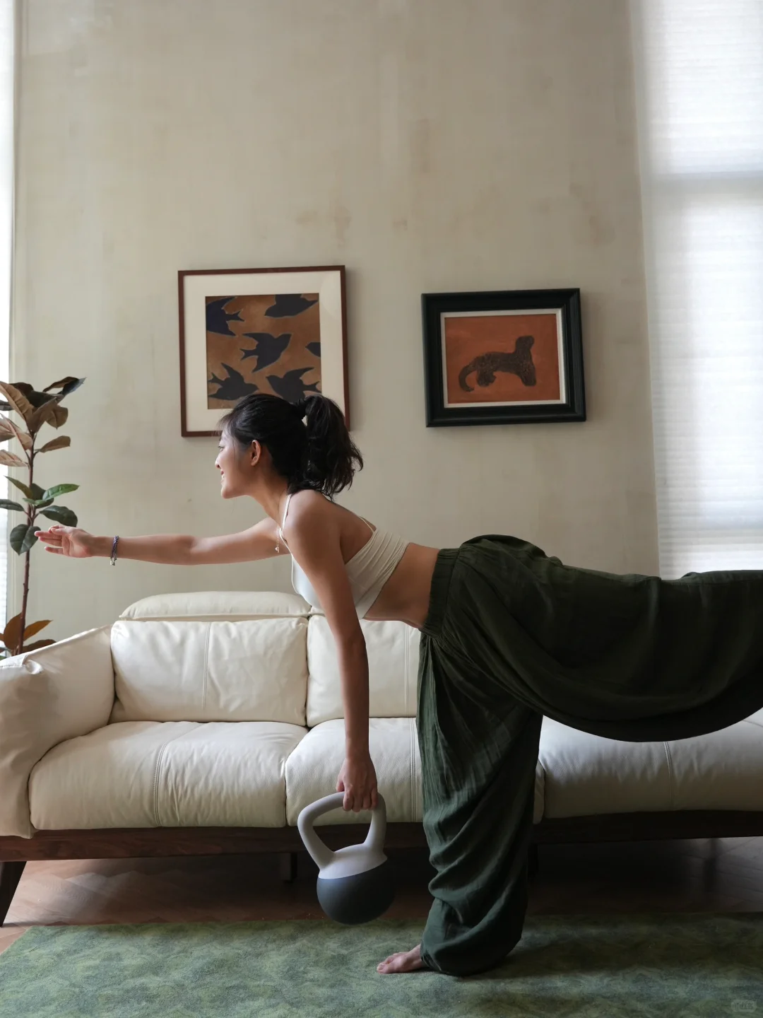 客厅的实木沙发是我zui好的瑜伽“辅具”,可以帮助拉伸,开启充满活力的清晨!