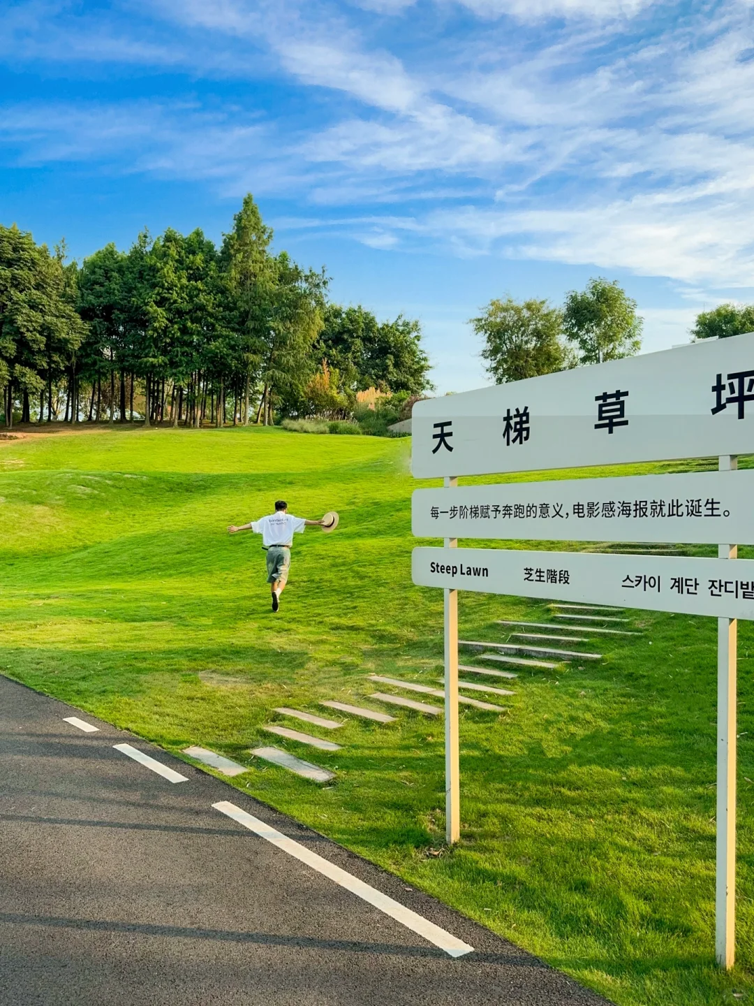 岛整体比较大,比较出片的地方就是天梯草坪。有着坡度的大草坪视野真的很开阔,下午的时候夕阳照在草坪上形成明暗面,真的很美!
