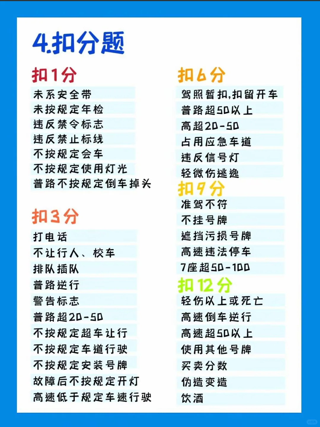 科目二扣分标准解读 起步易扣分点 超全 1.未系安全带:扣100分 *...